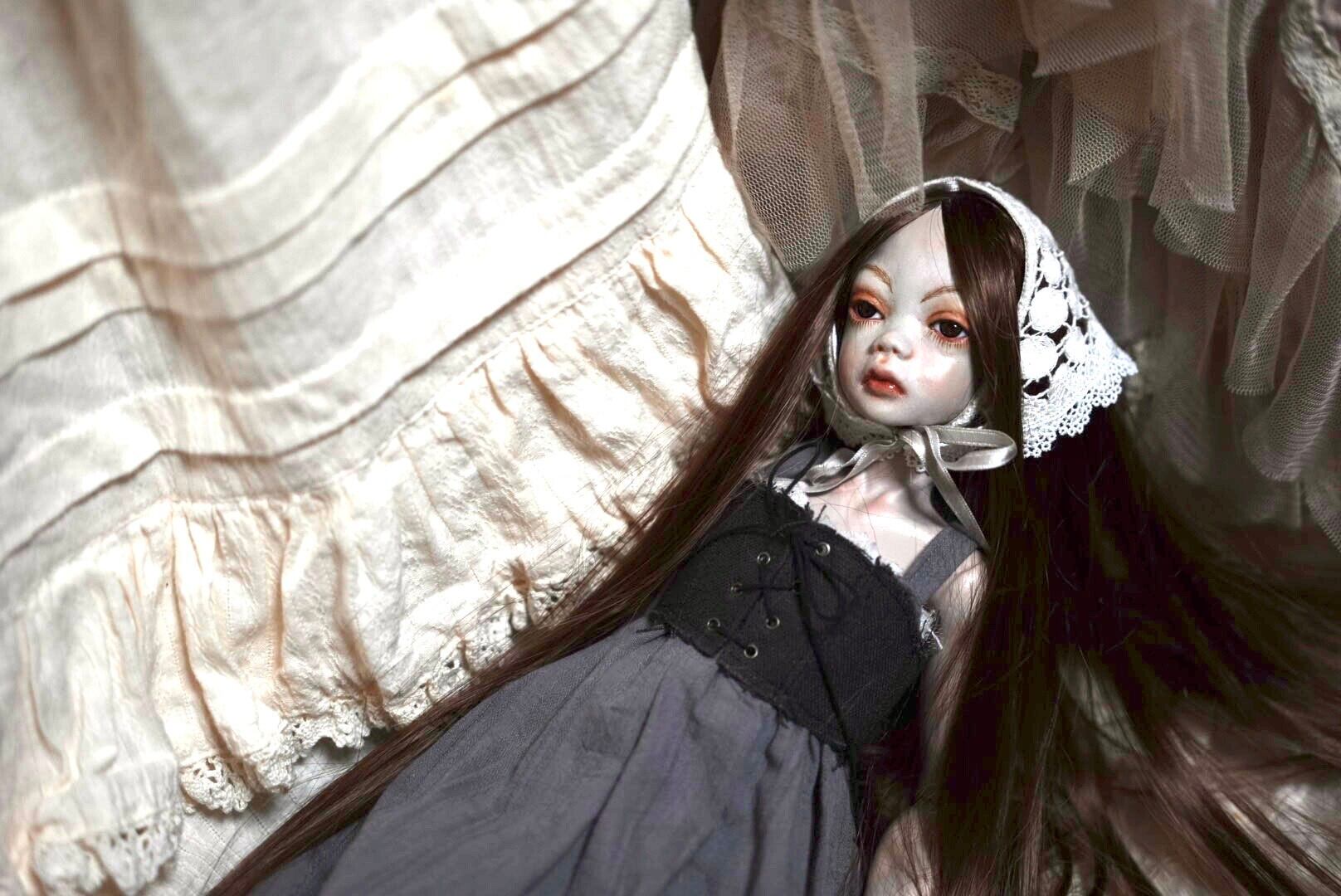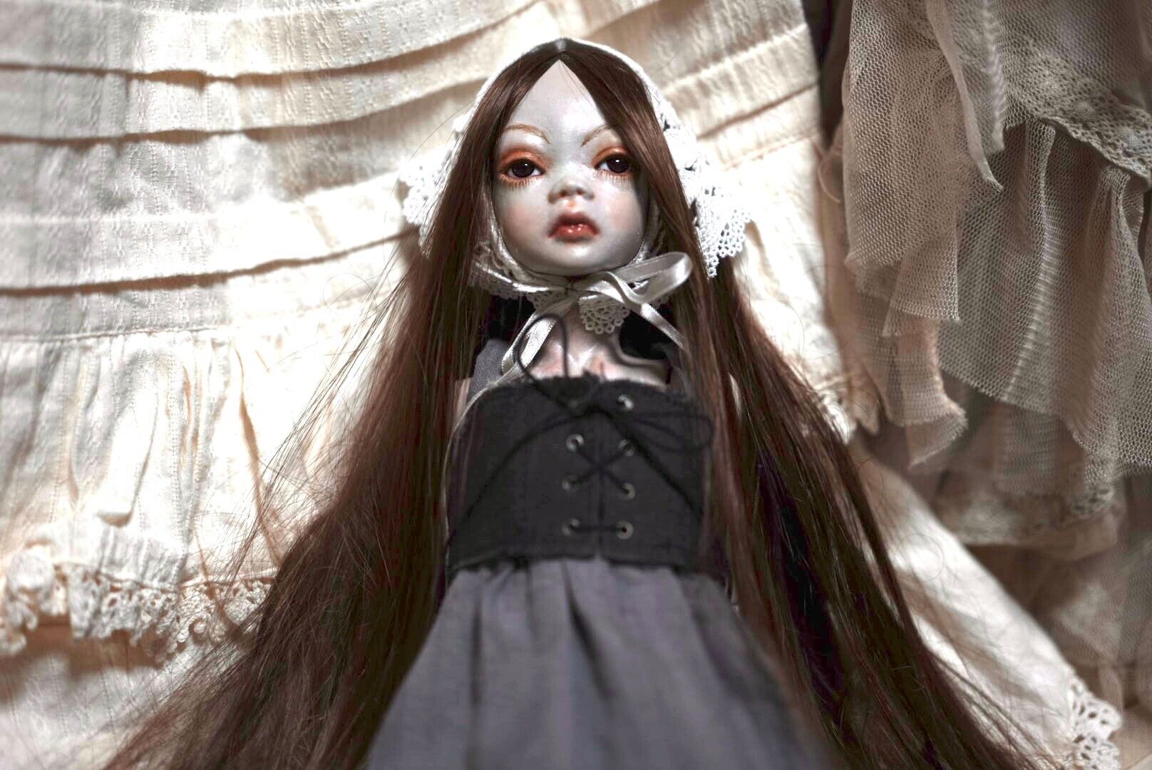 かわいらしいサイズ感ではあるが球体関節人形の魅力をしっかりと備えた作品。