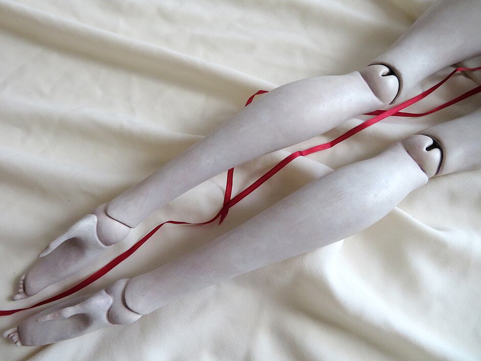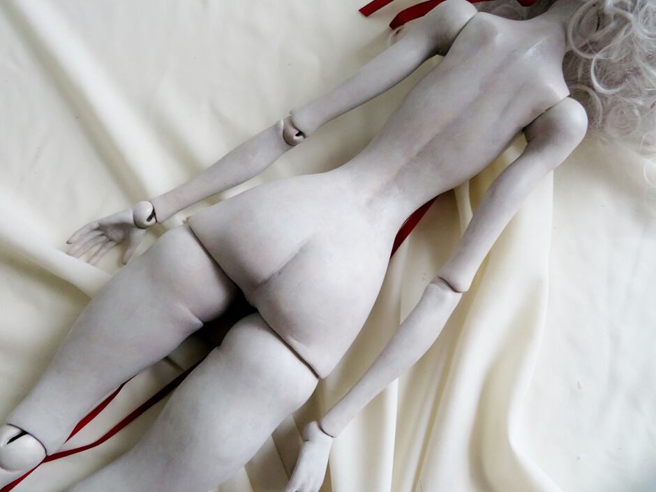 頭部が大きく、対して胴体は小さめの、人形らしい身体性を持っています。