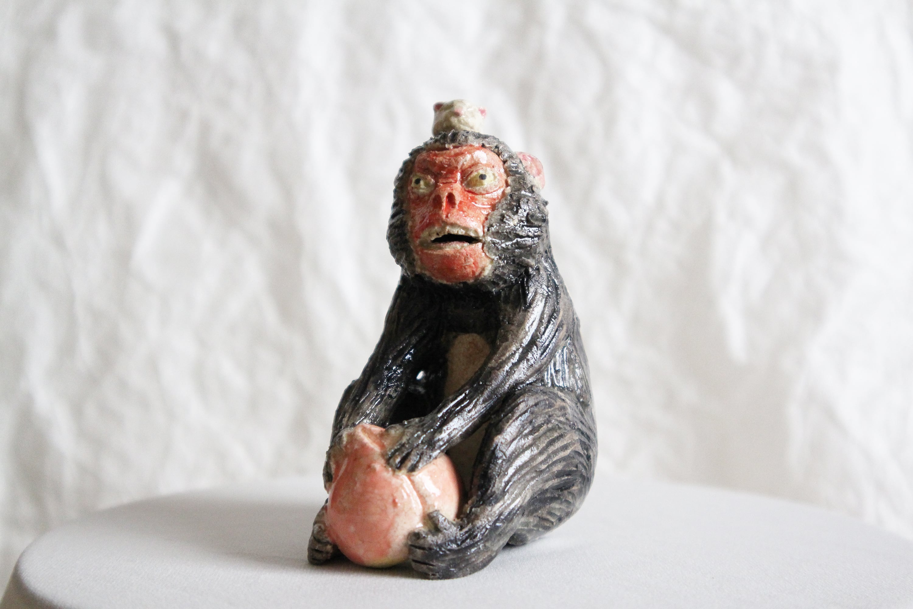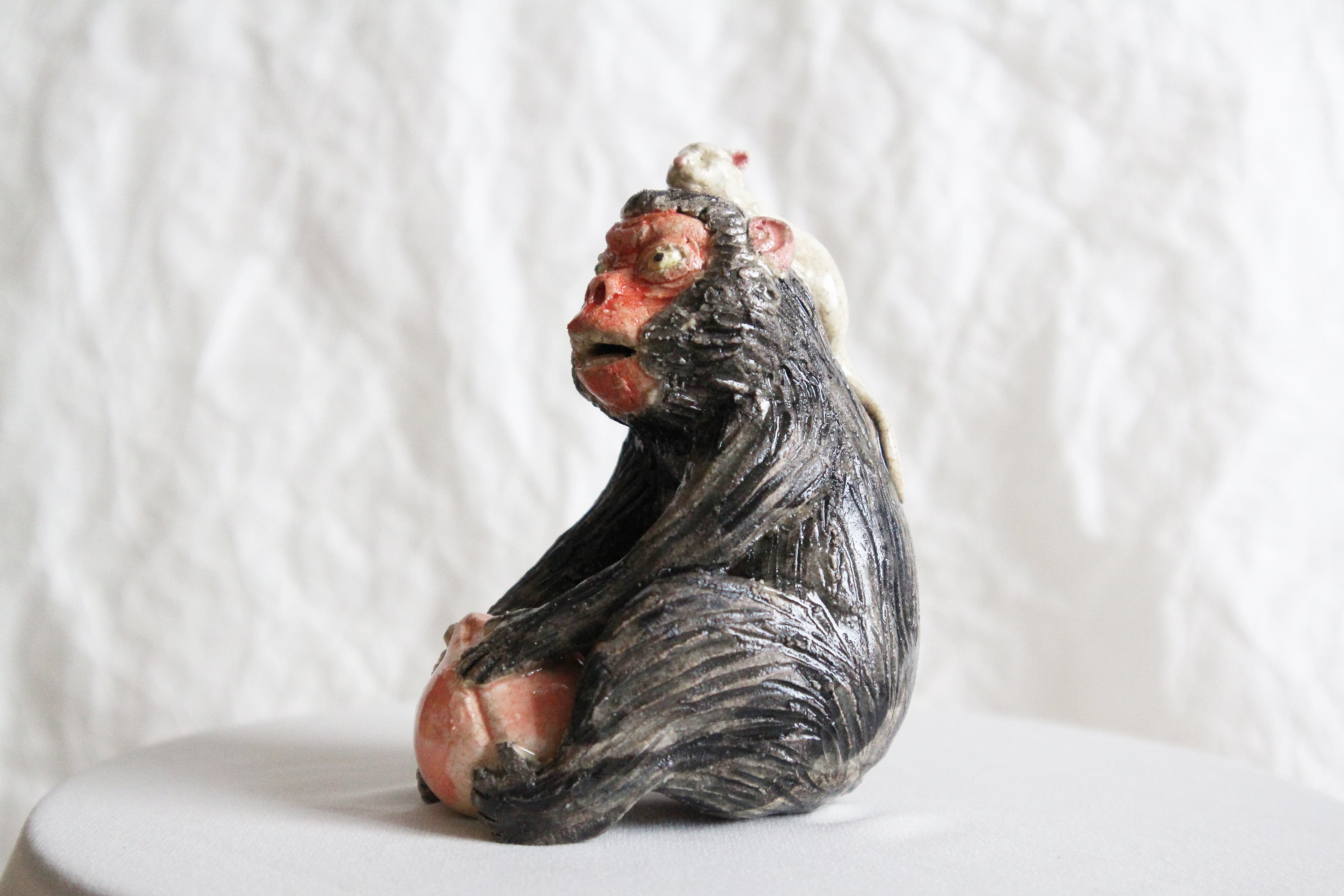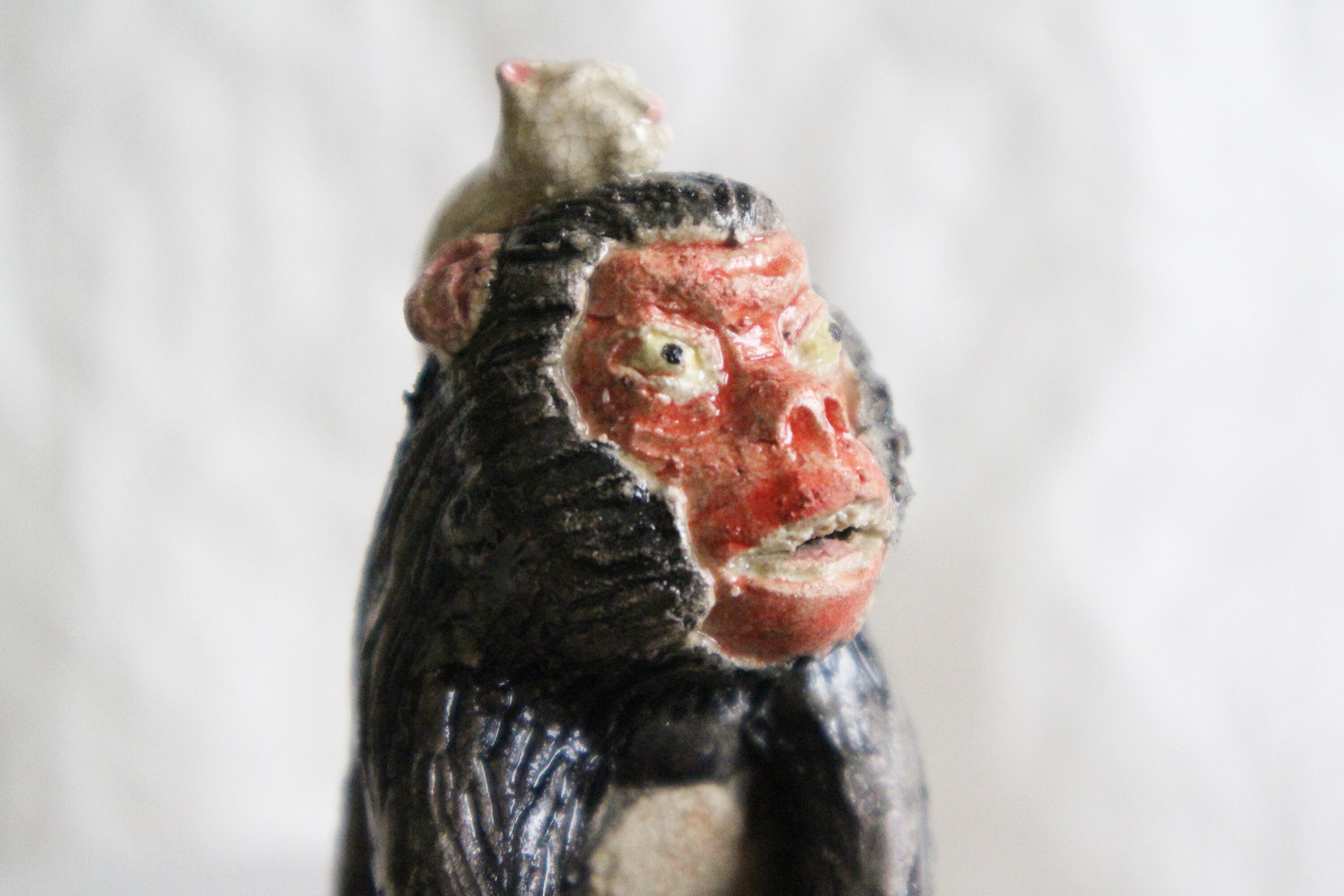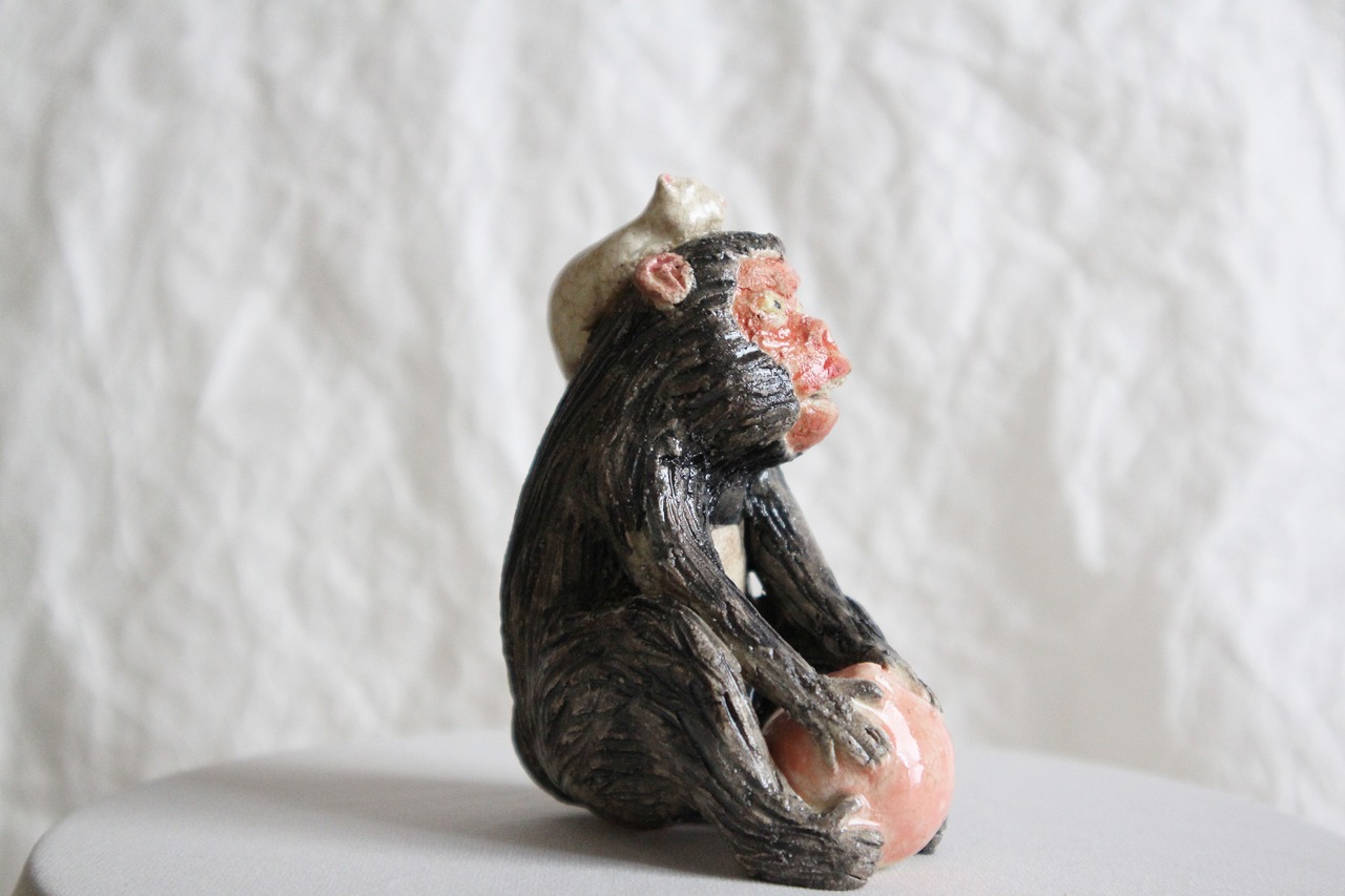 陶芸作家の相場るい児さんによる猿の陶人形。