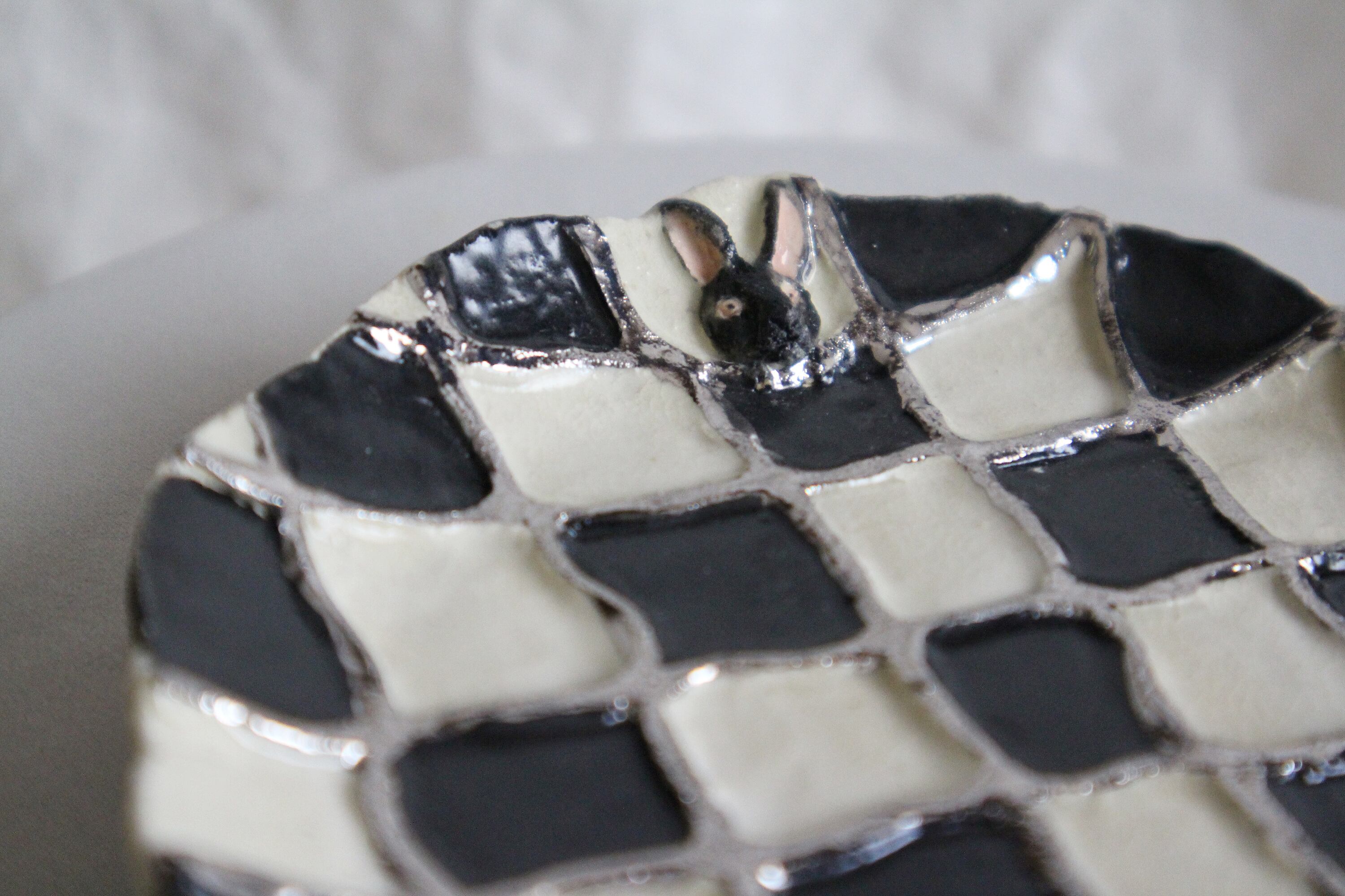 升目のひとつにはアリスを不思議の国へと誘うウサギの顔が。