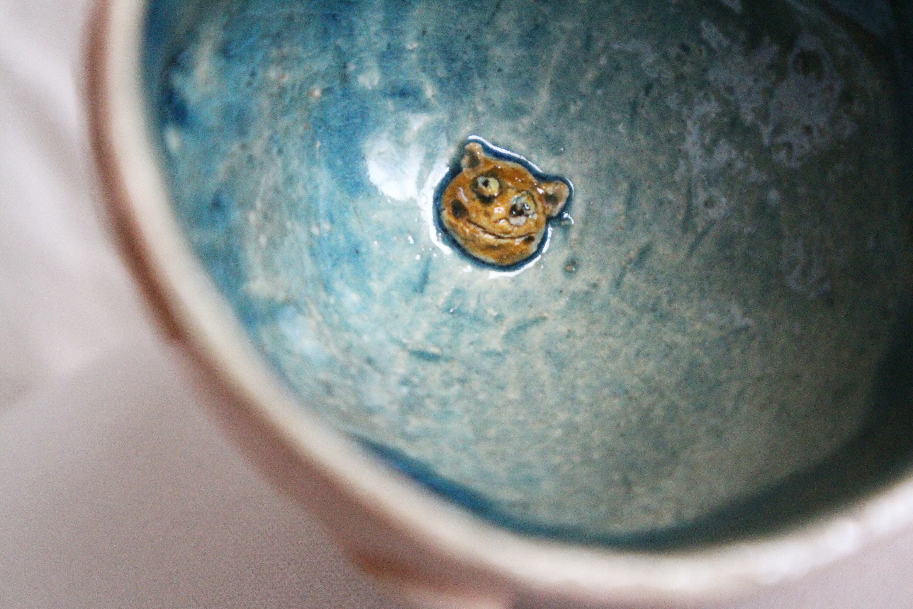 カップの底には「不思議の国のアリス」に登場する架空の猫、