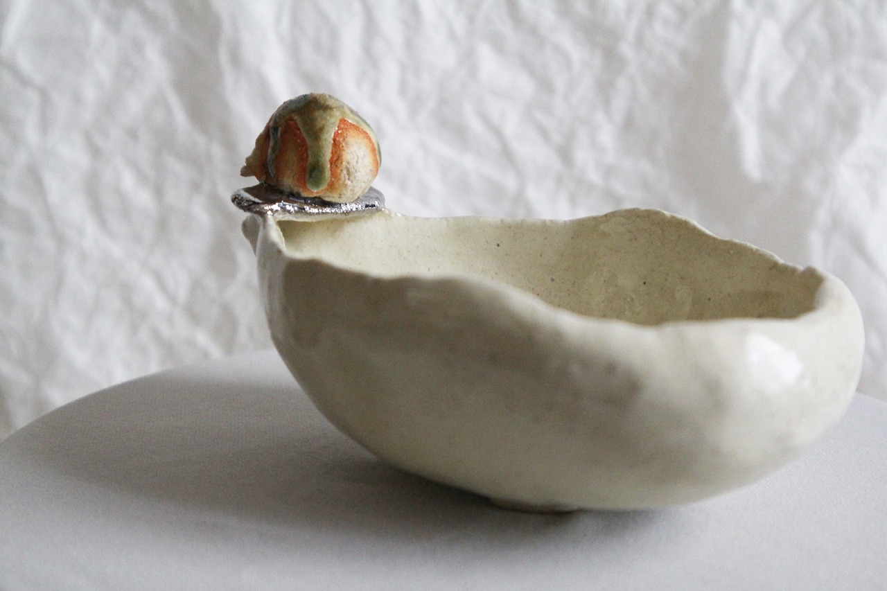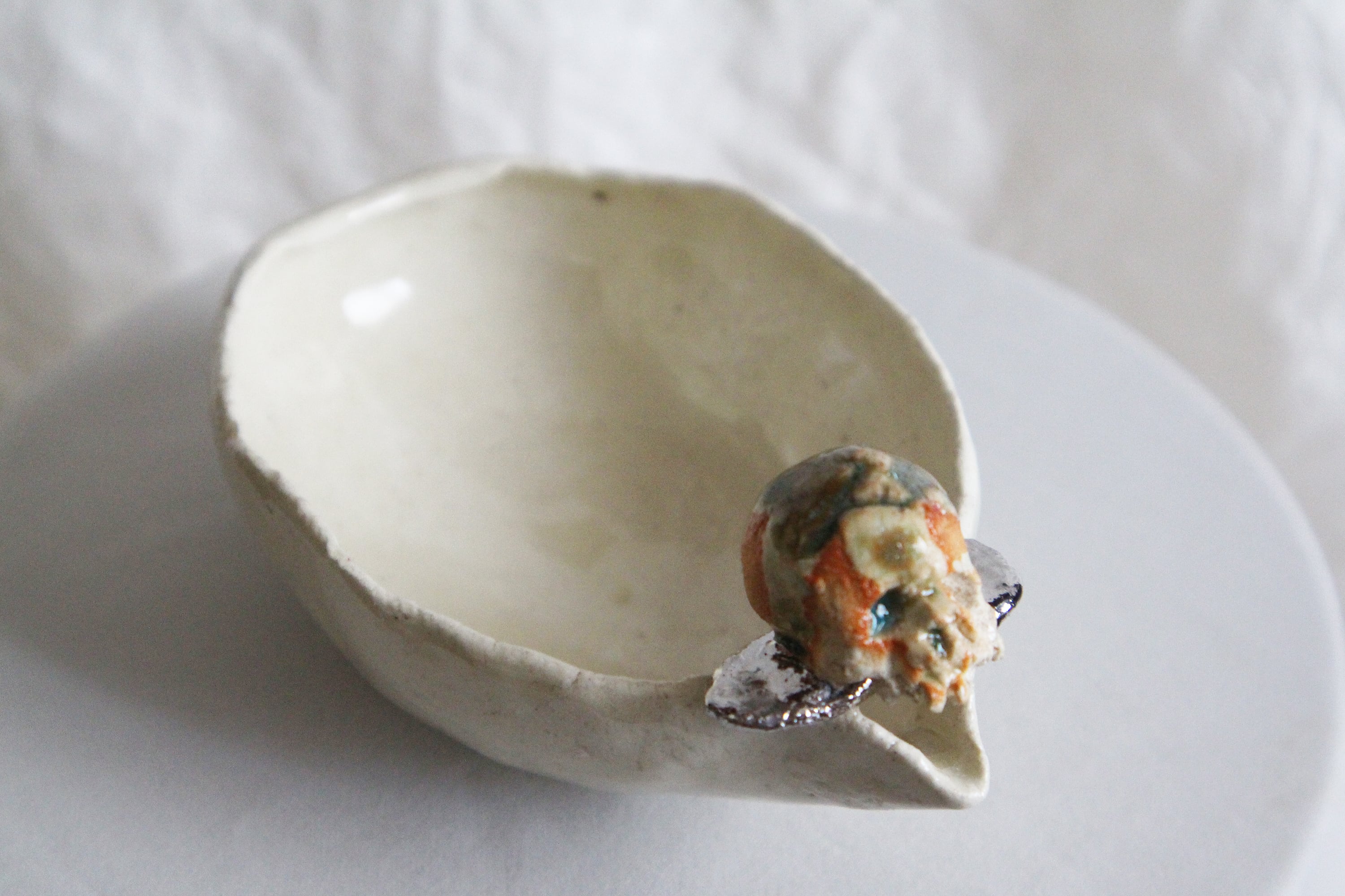 髑髏が乗る横板にはプラチナ釉がかかっている。