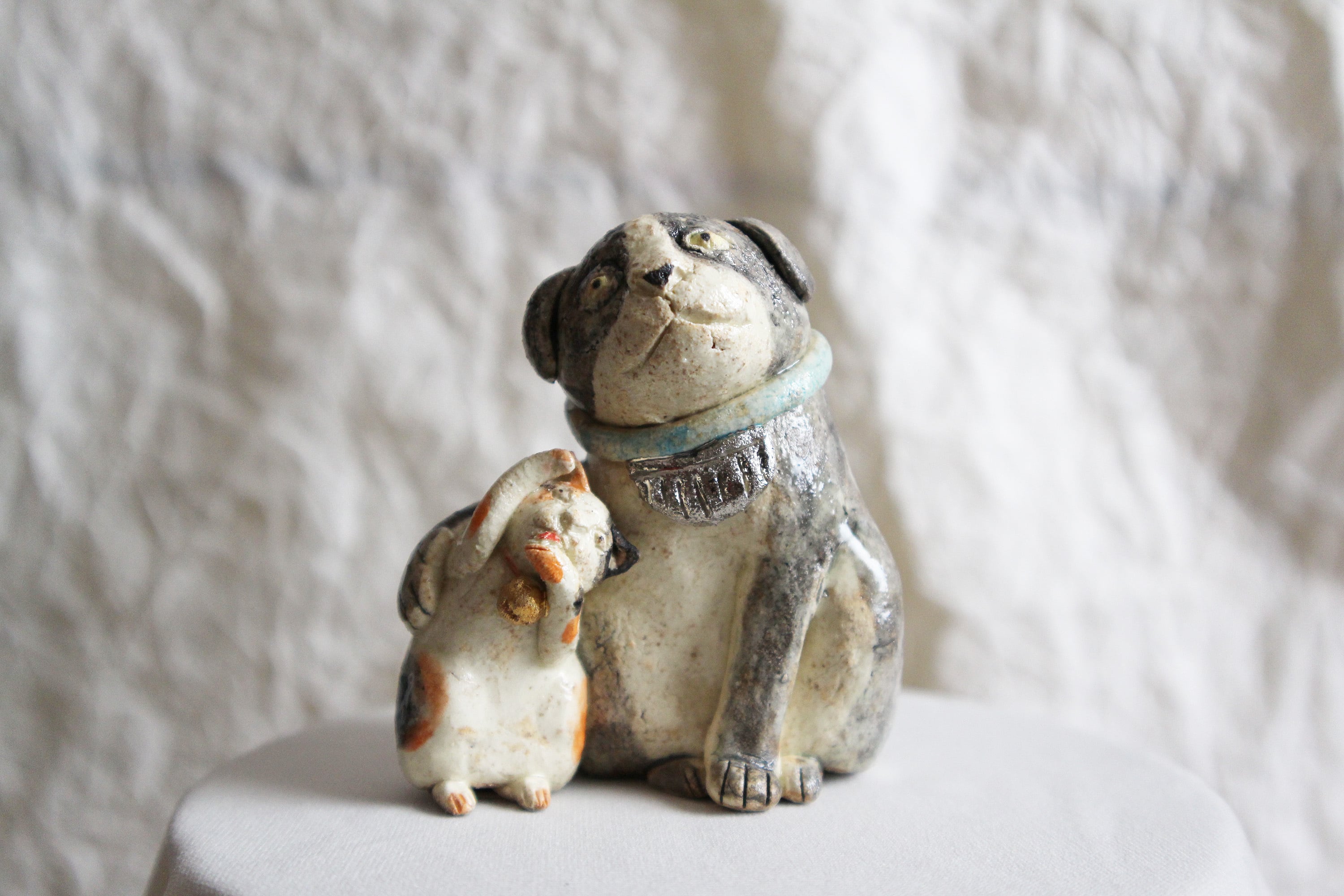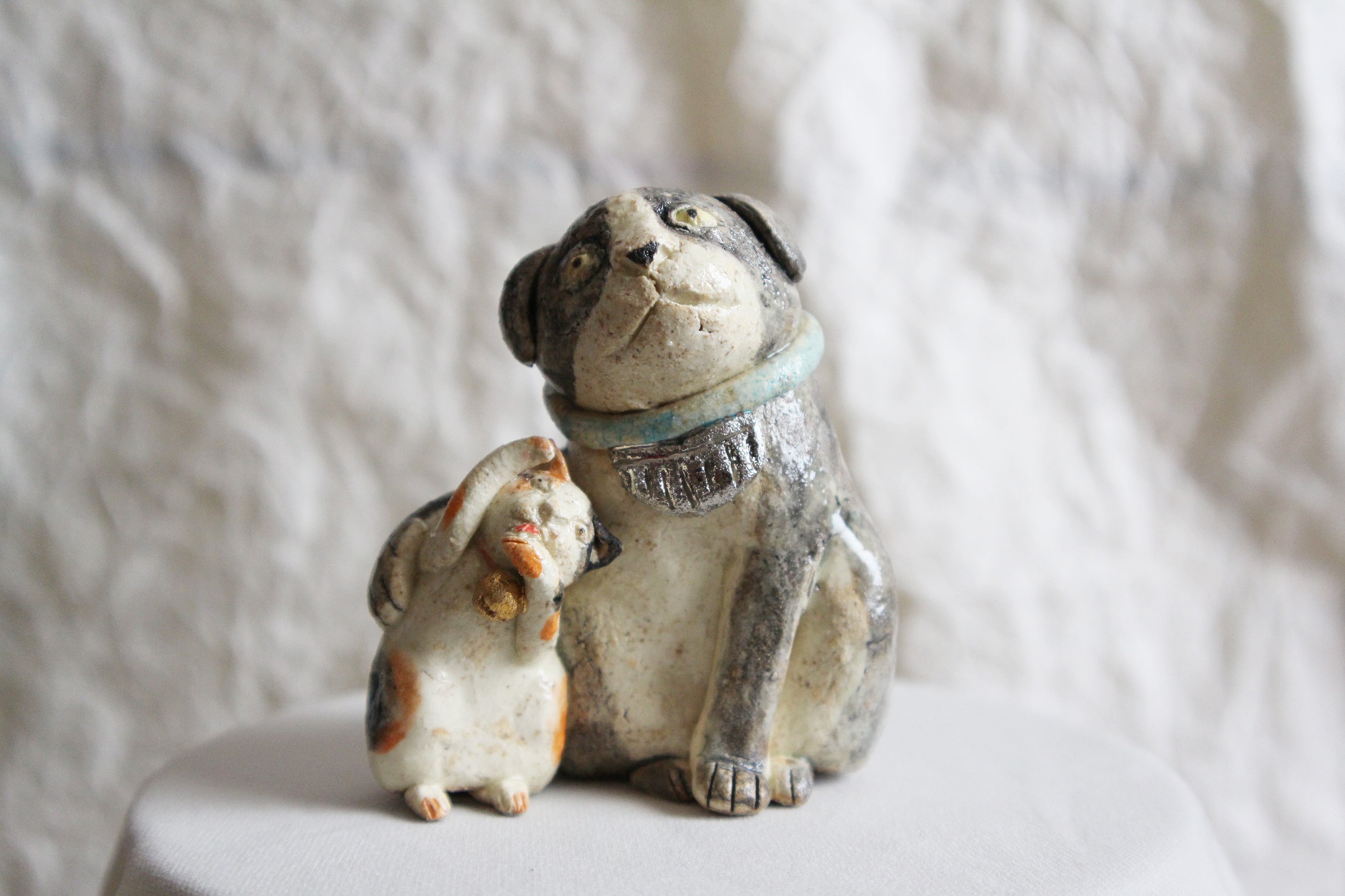 陶芸作家の相場るい児さんによる戌(犬)の陶人形。