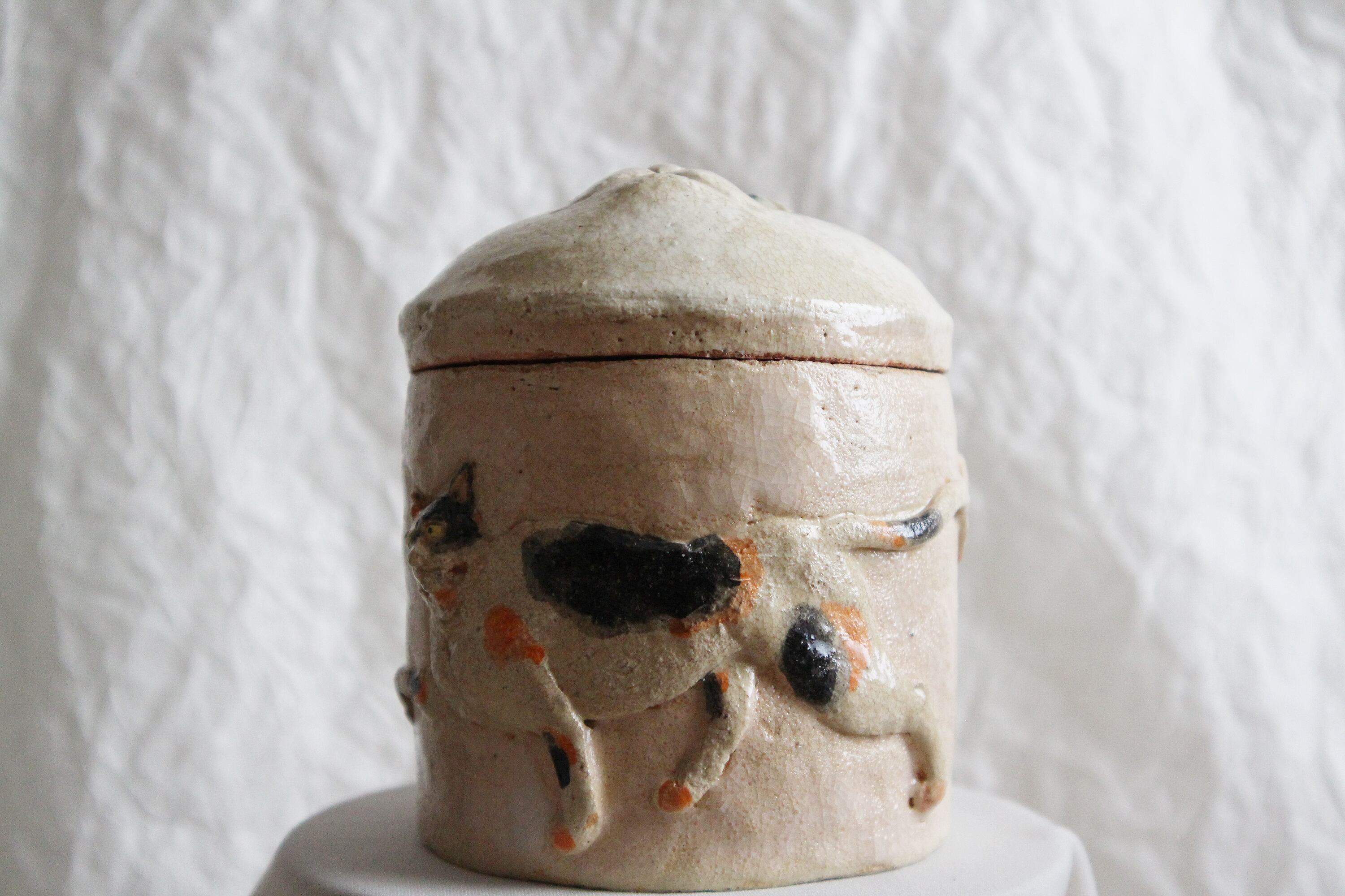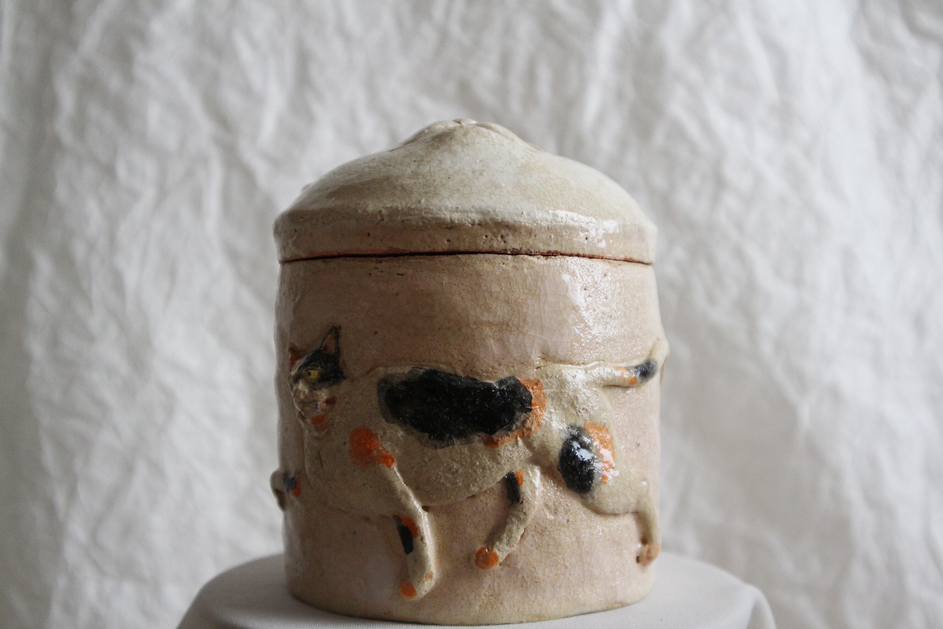 前述の意図をもって作られていますが、単に猫の蓋物としても楽しんでいただけます。