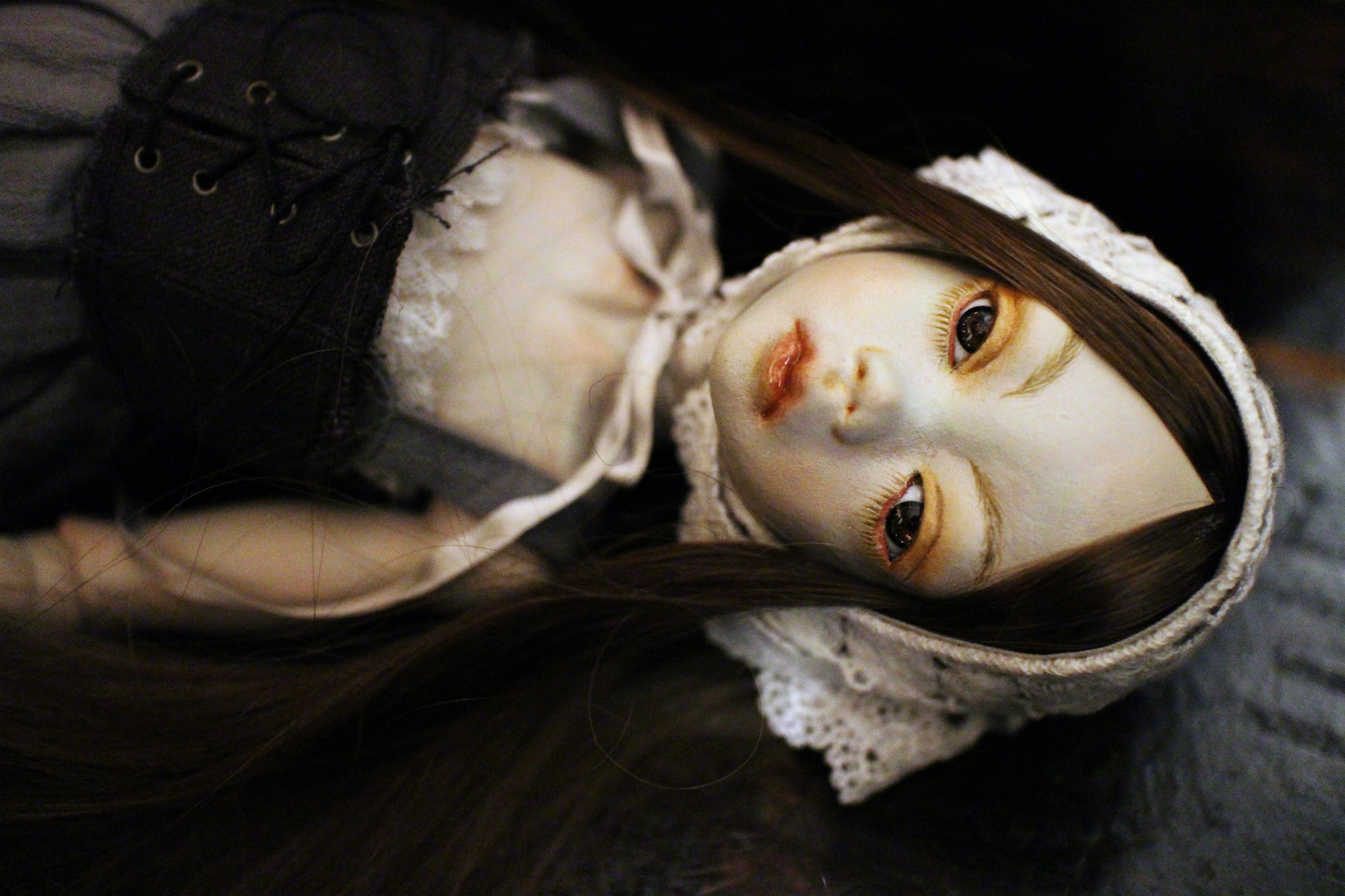 泥漿粘土 胡粉 油彩 グラスアイ 人毛 約39㎝