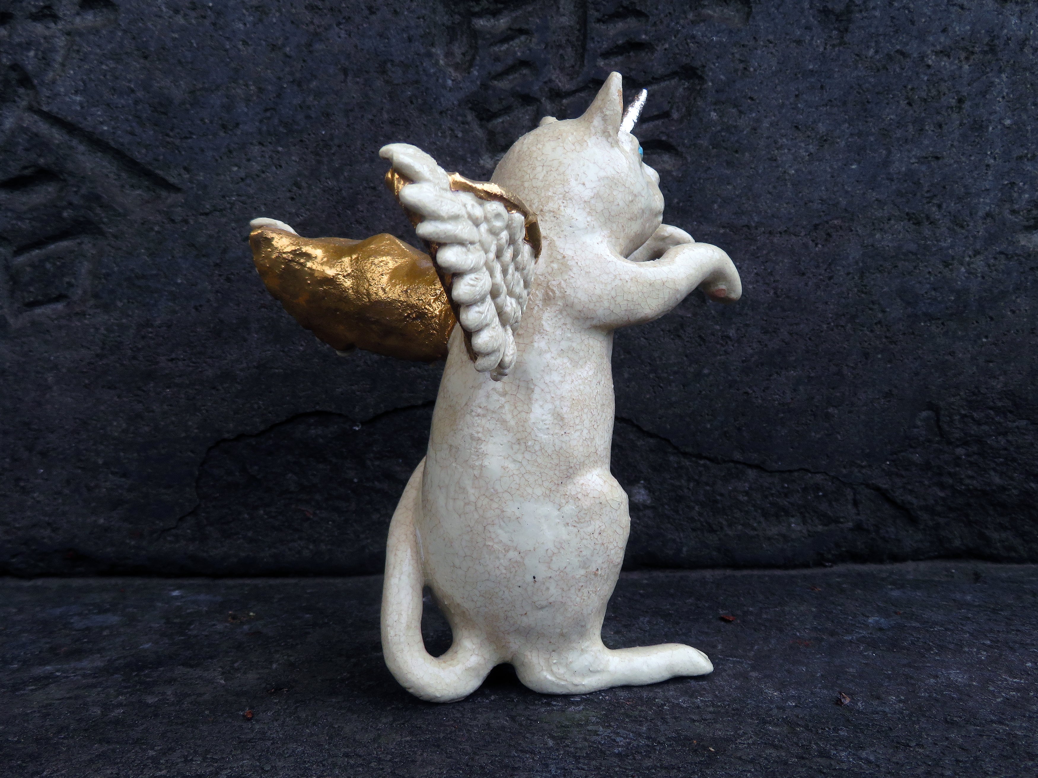 作品サイズ/全高約15㎝(角の先まで) 幅約15㎝(翼の先まで) 奥行約9.5㎝(翼の先まで)