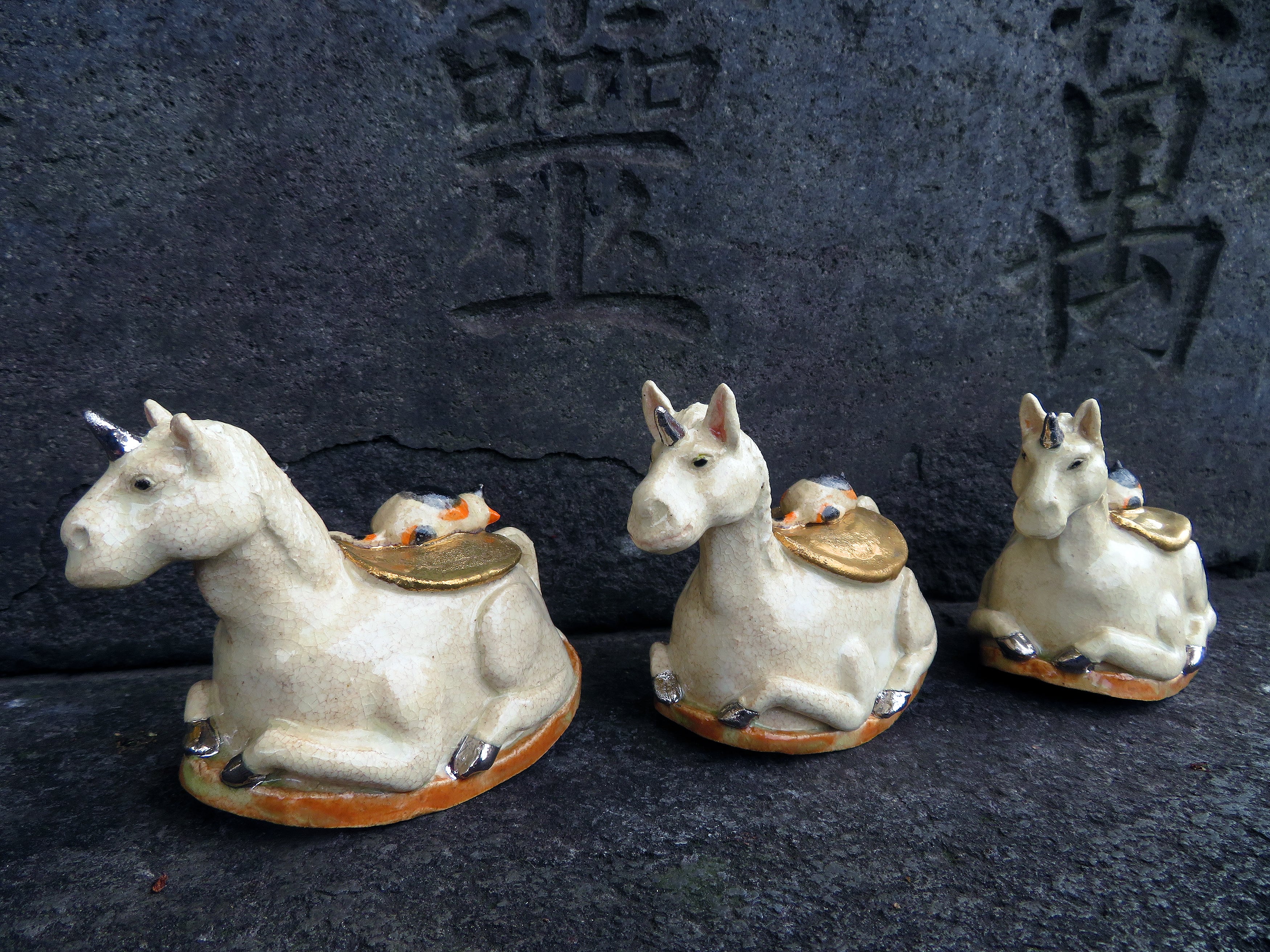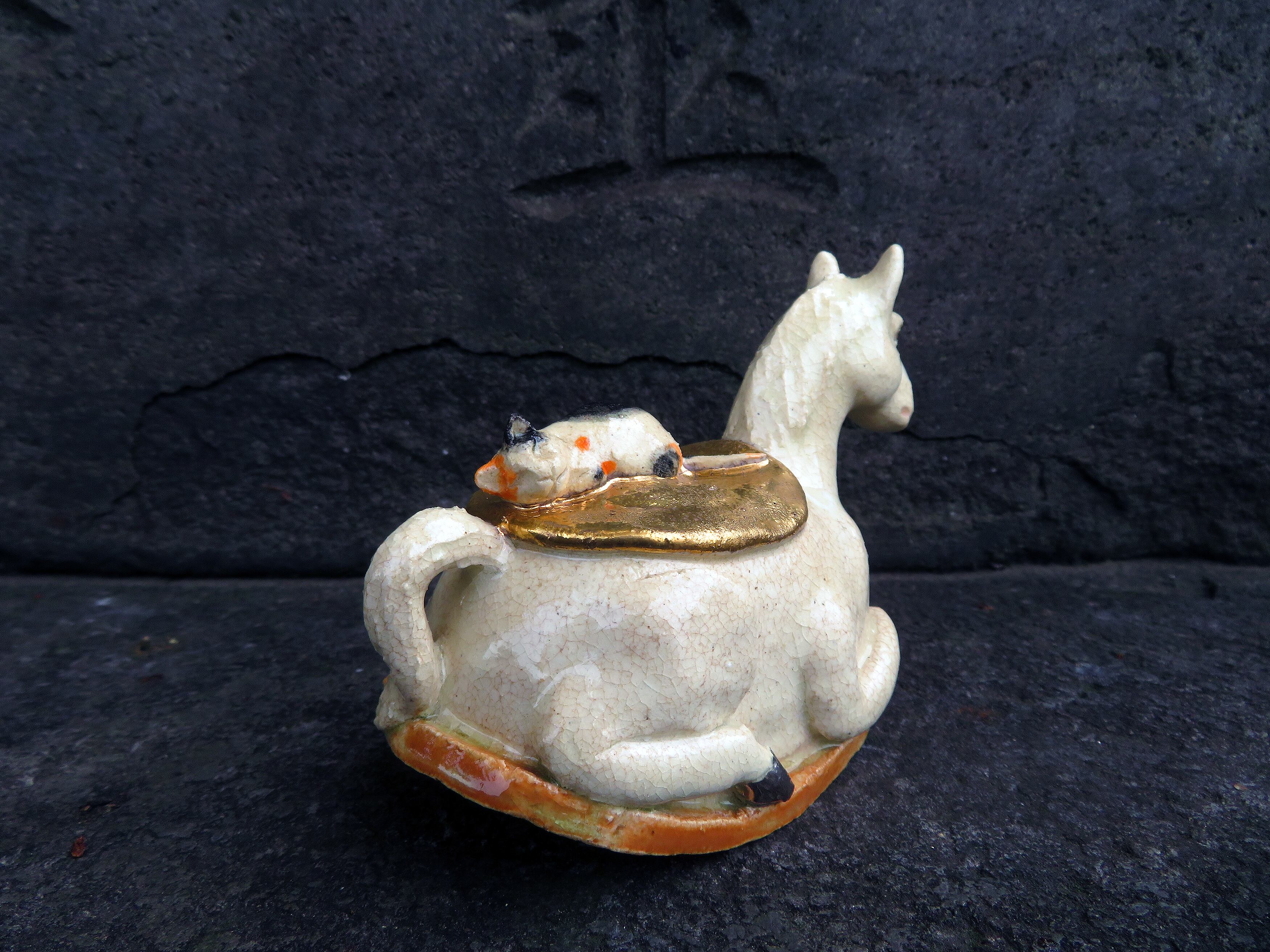 角と蹄にはプラチナ釉、鞍は金釉の仕上げ。