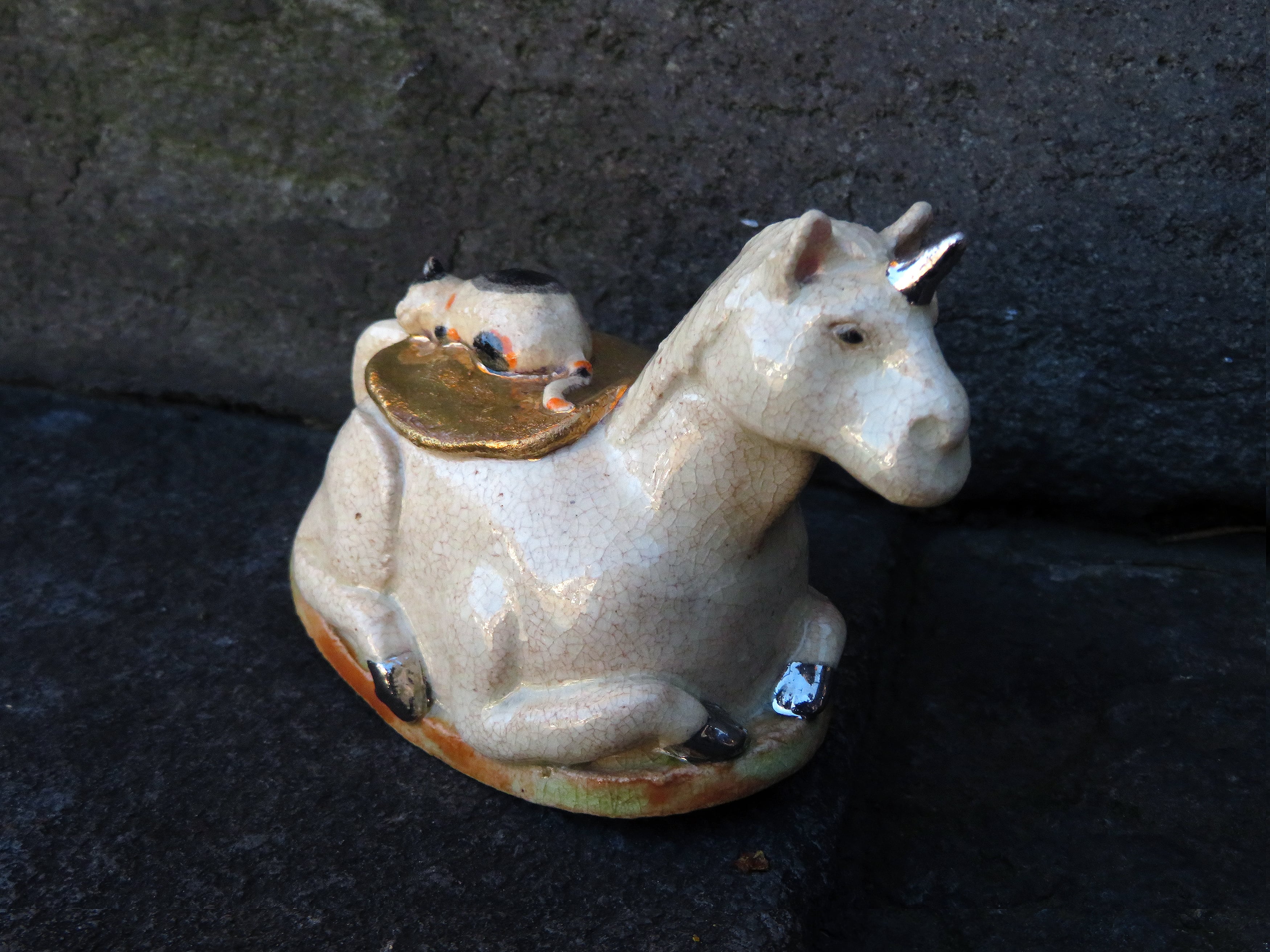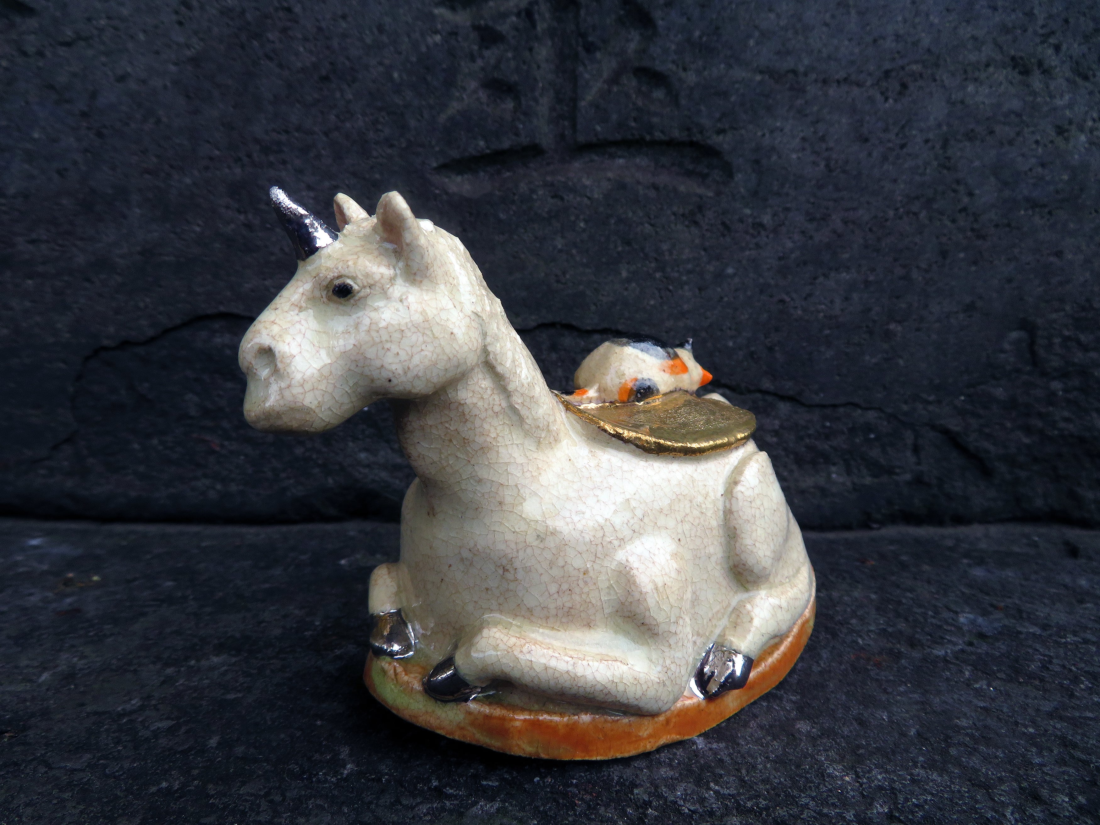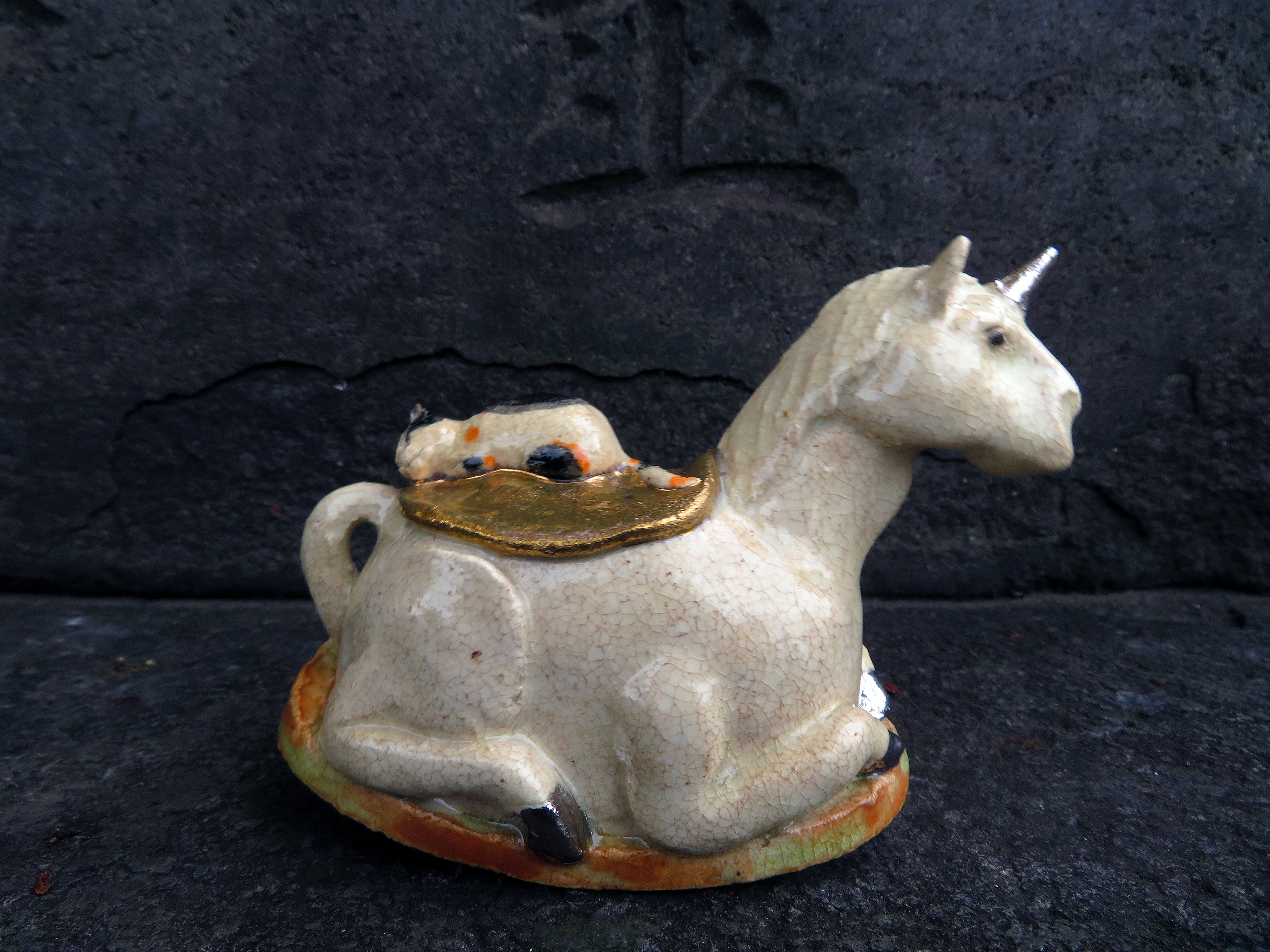 角と蹄にはプラチナ釉、鞍は金釉の仕上げ。
