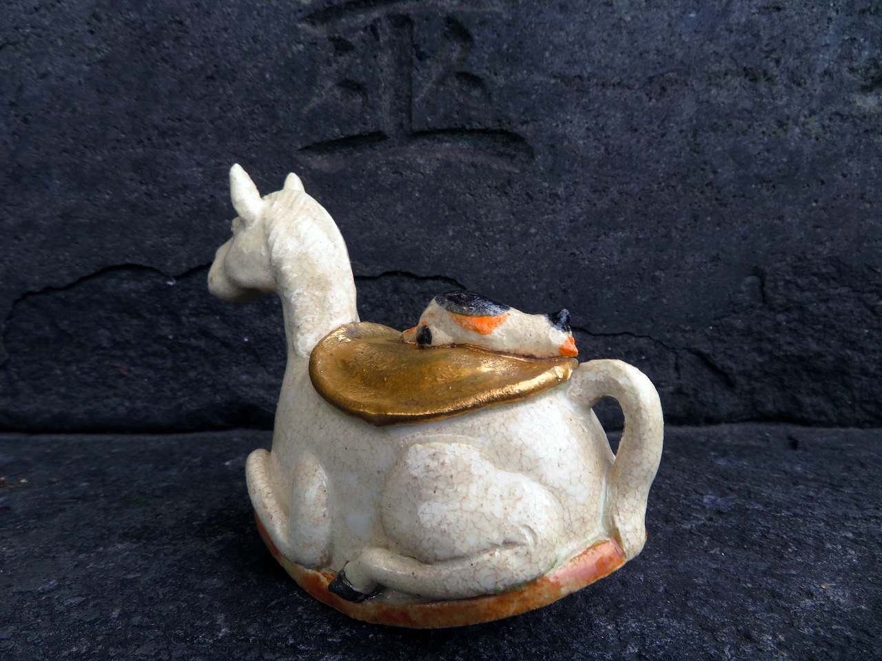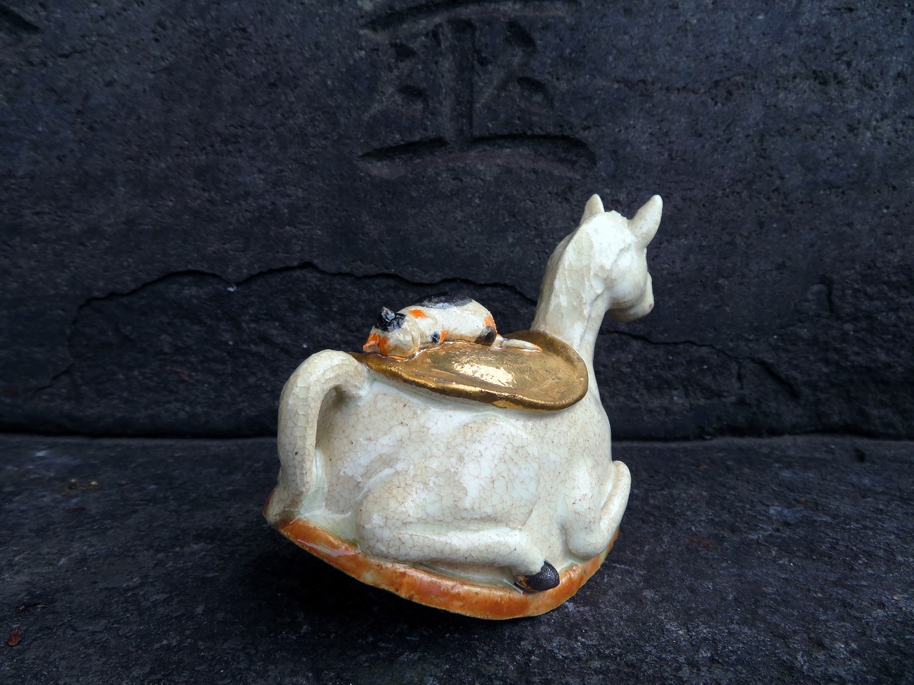 角と蹄にはプラチナ釉、鞍は金釉の仕上げ。