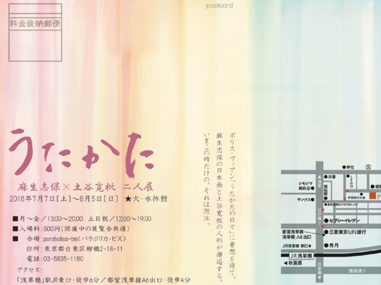 麻生志保の日本画と土谷寛枇の人形が邂逅する。