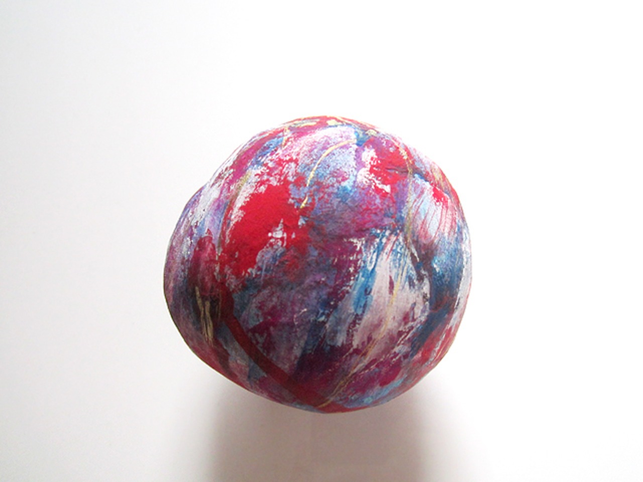 作品サイズ/直径約8.5cm 幅約7.8cm 素材/石粉粘土・日本画顔料・アクリル