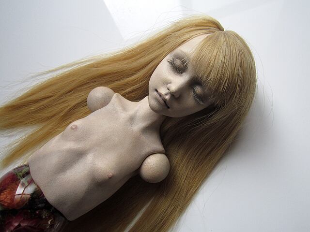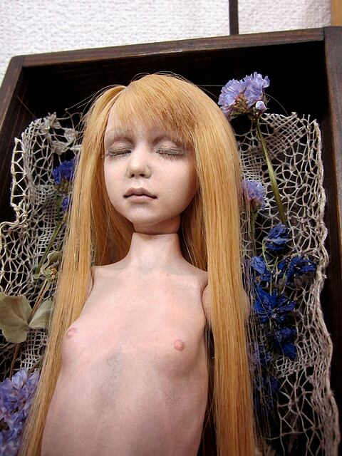 アンモナイト等の化石のように、書架や机に飾ってもらいたいというコンセプトで制作された比較的小型の少女人形です。