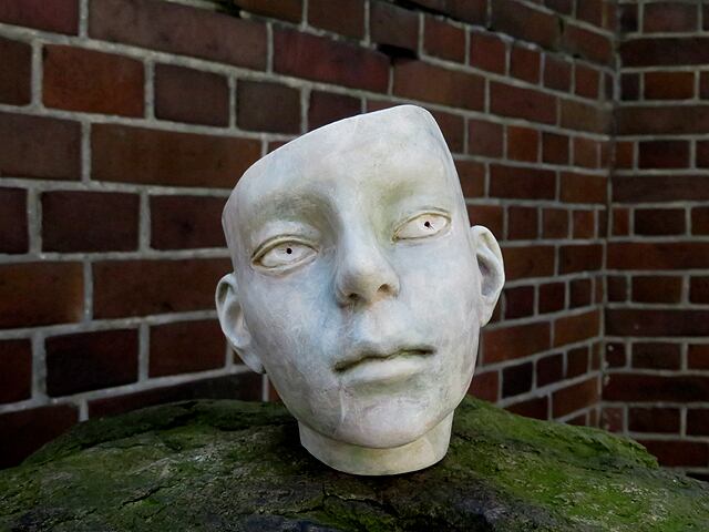 頭の一部が欠けており欠けた部分がそのまま視覚器となっている、というイメージのもとに制作されています。