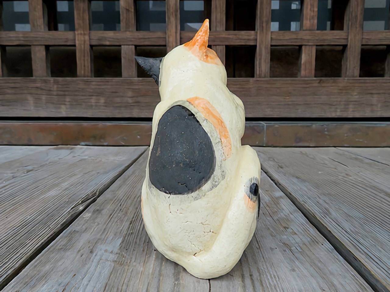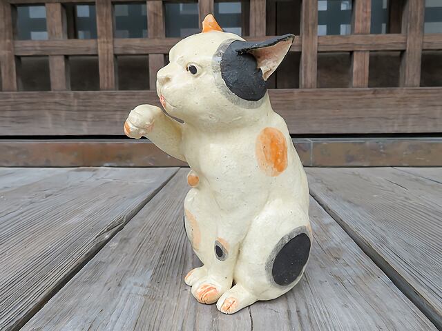 陶芸作家の相場るい児さんによる三毛の招き猫です。