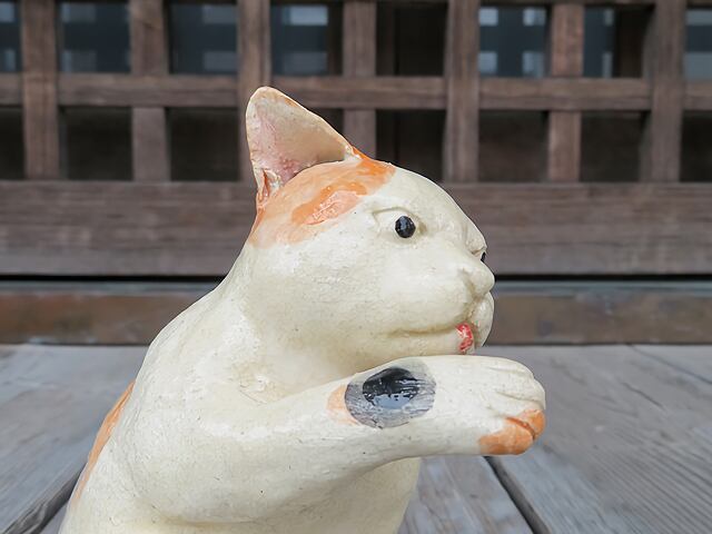 手のひらサイズの招き猫より場面が広い分、表情も豊か。