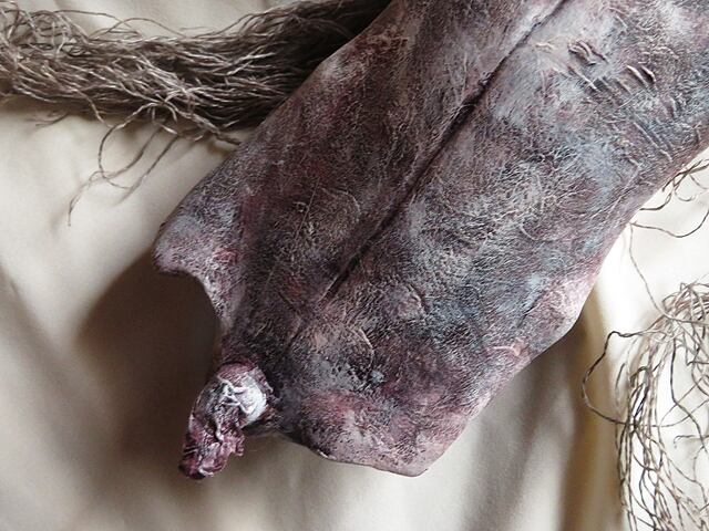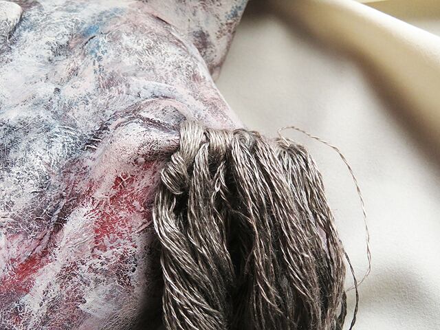 素材/石粉粘土 和紙 麻紐 テンペラ