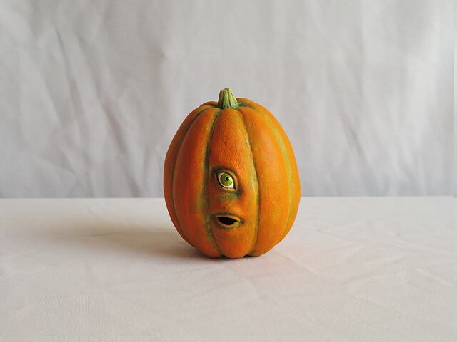 このカボチャは背面にある目の片方と、両方の鼻の穴が開口部になっています。