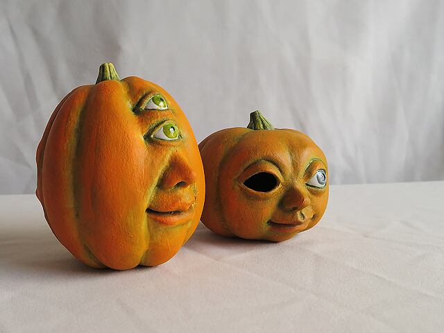 今回の『パンプキンブラザーズ』は、ハロウィンをテーマにした江村さんの小品展に寄せて、久々に制作されたもの。