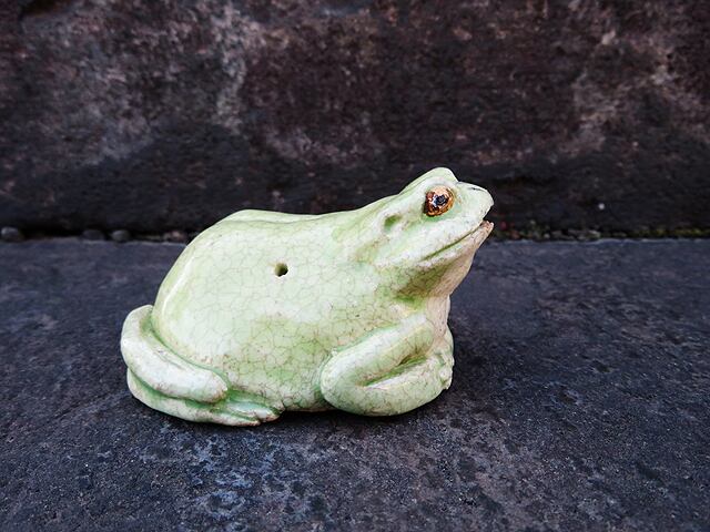 相場るい児さんによる蛙を意匠にした陶の水滴。
