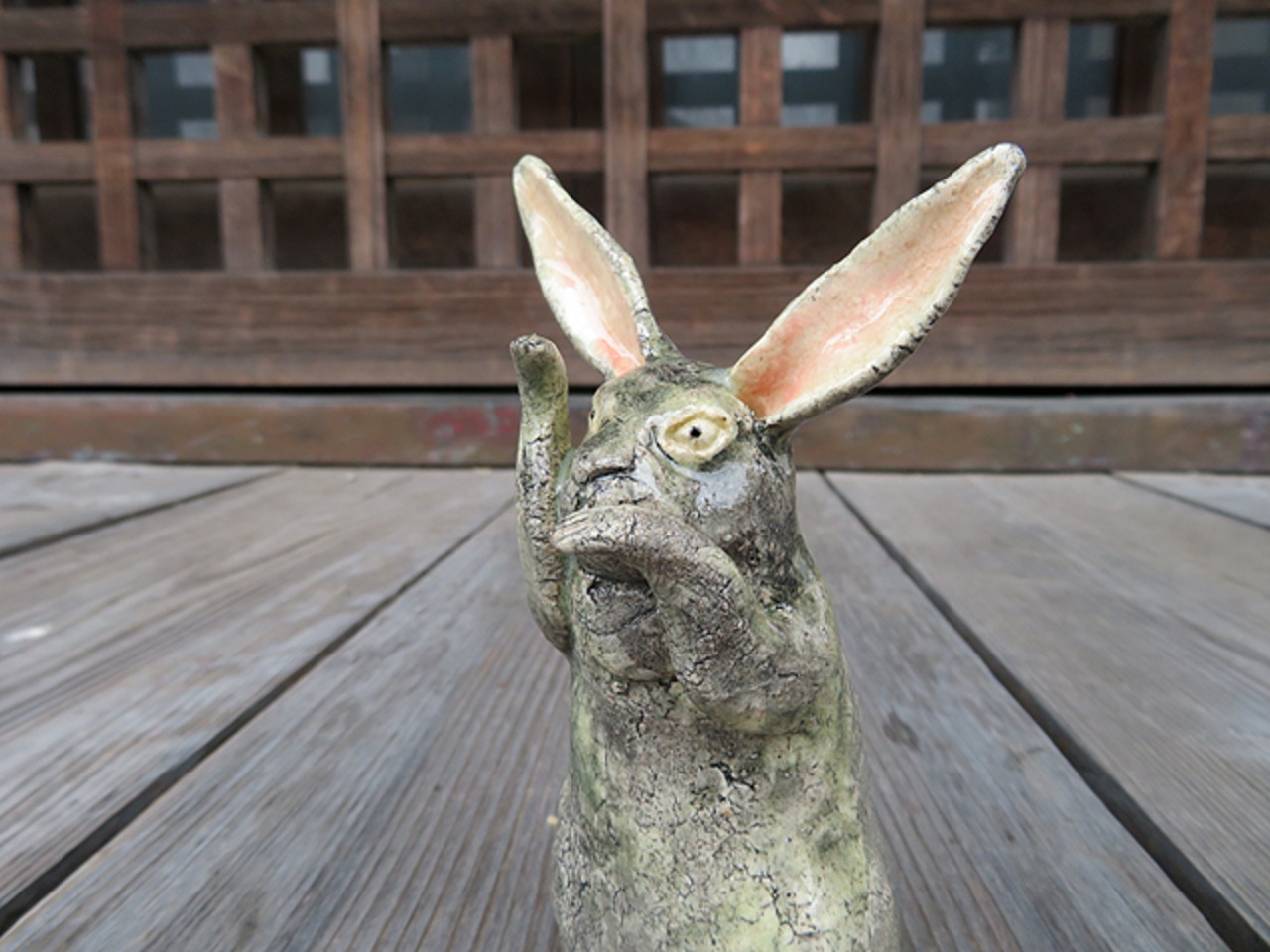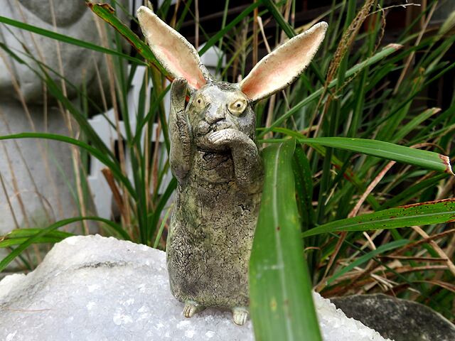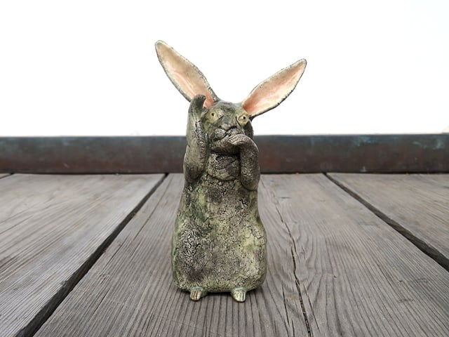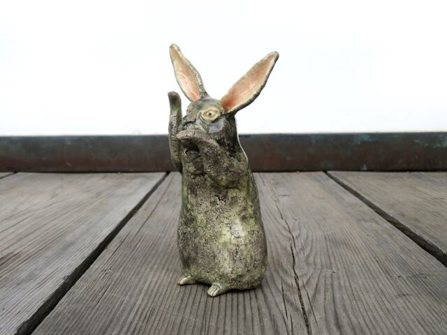 陶芸作家の相場るい児さんによる兎の陶人形シリーズのひとつ。