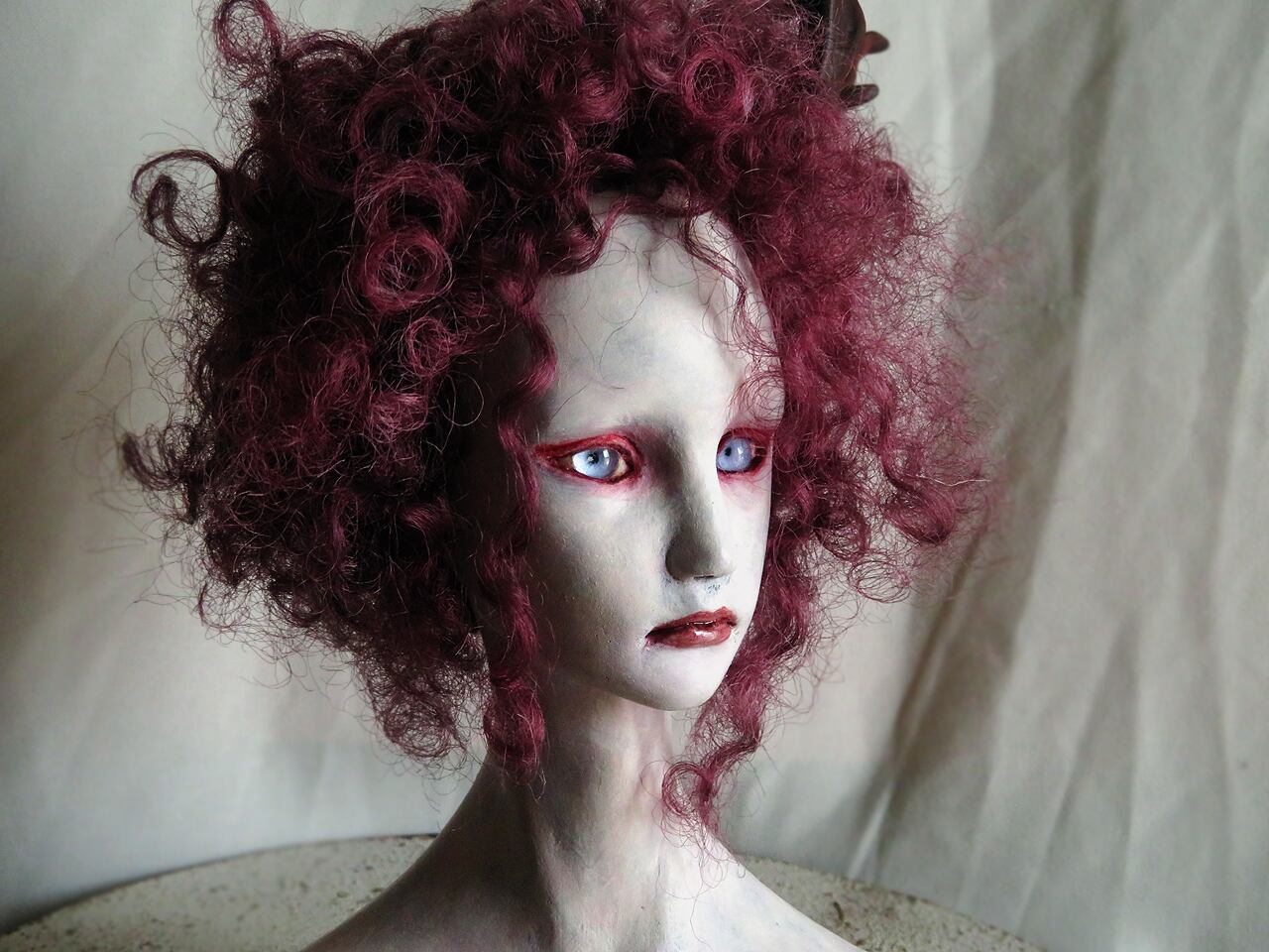 素材/石塑粘土 テンペラ彩色 絹糸 グラスアイ
