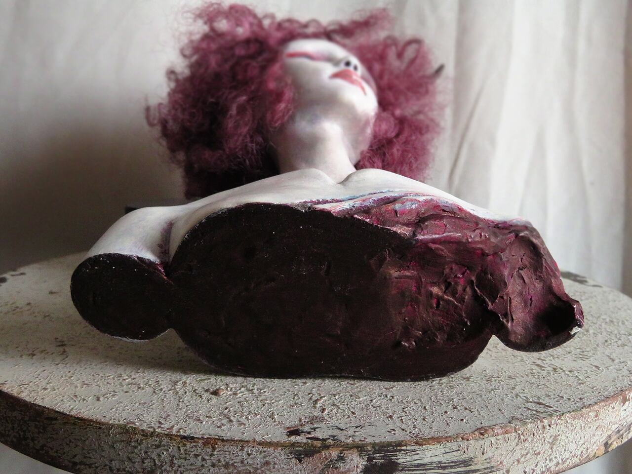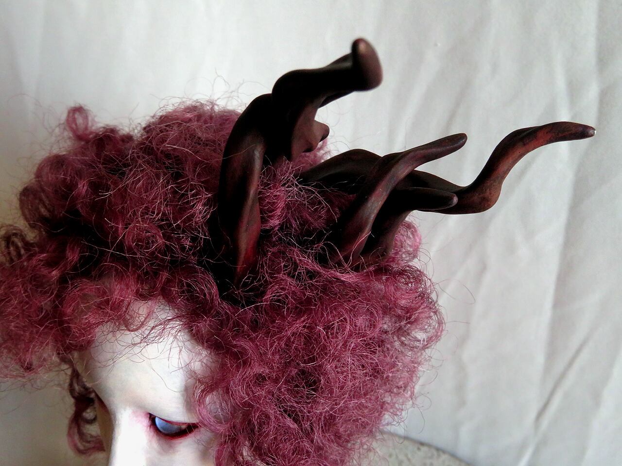 髪は江村さんが染めた絹糸。