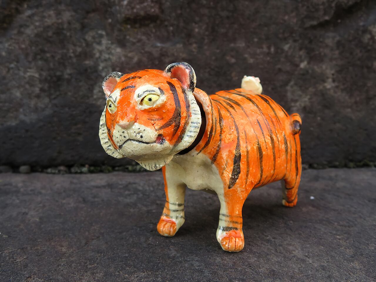 今回はトラがネコ科の動物ということで猫ではなくネズミが背中に乗っています。