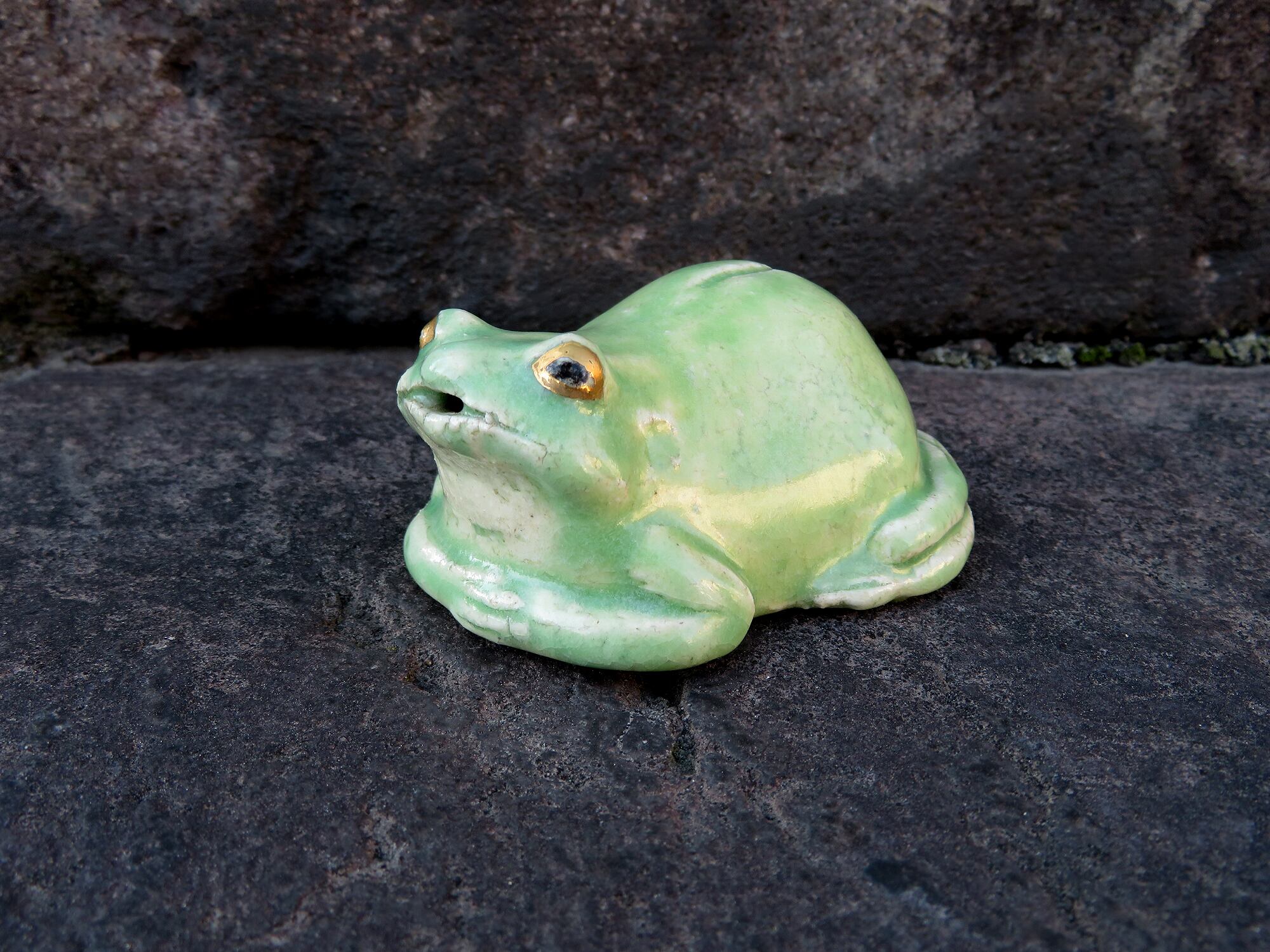 陶芸作家の相場るい児さんによるカエルを意匠にした水滴。