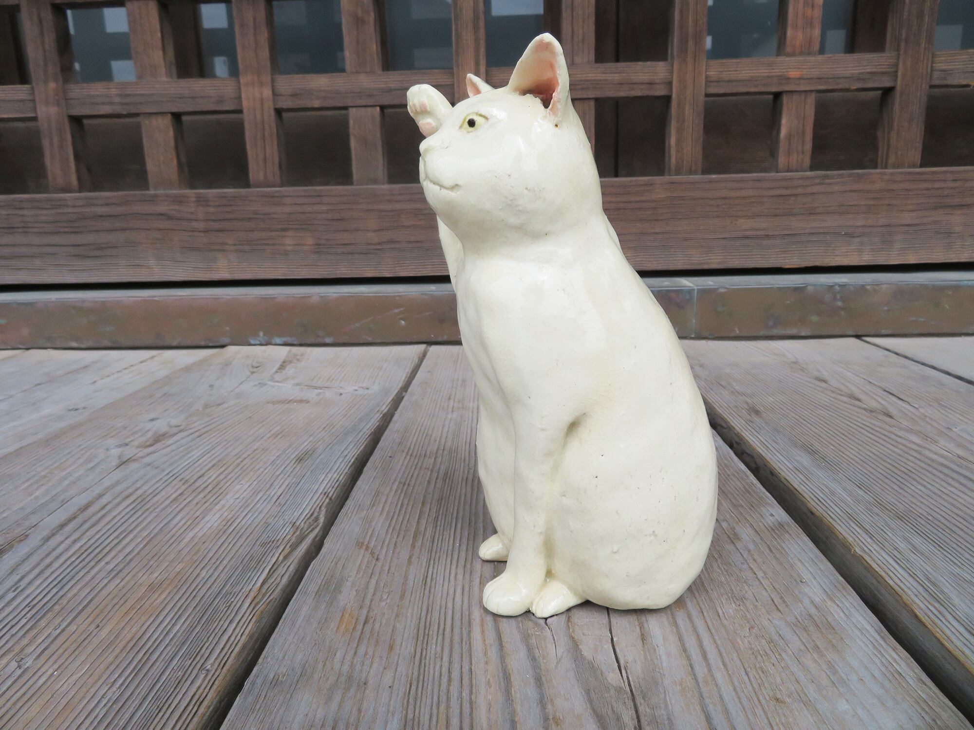 陶芸作家の相場るい児さんによる白の招き猫。