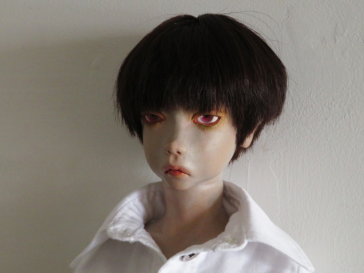 素材/石塑粘土・胡粉・油彩・人毛・オリジナルグラスアイ