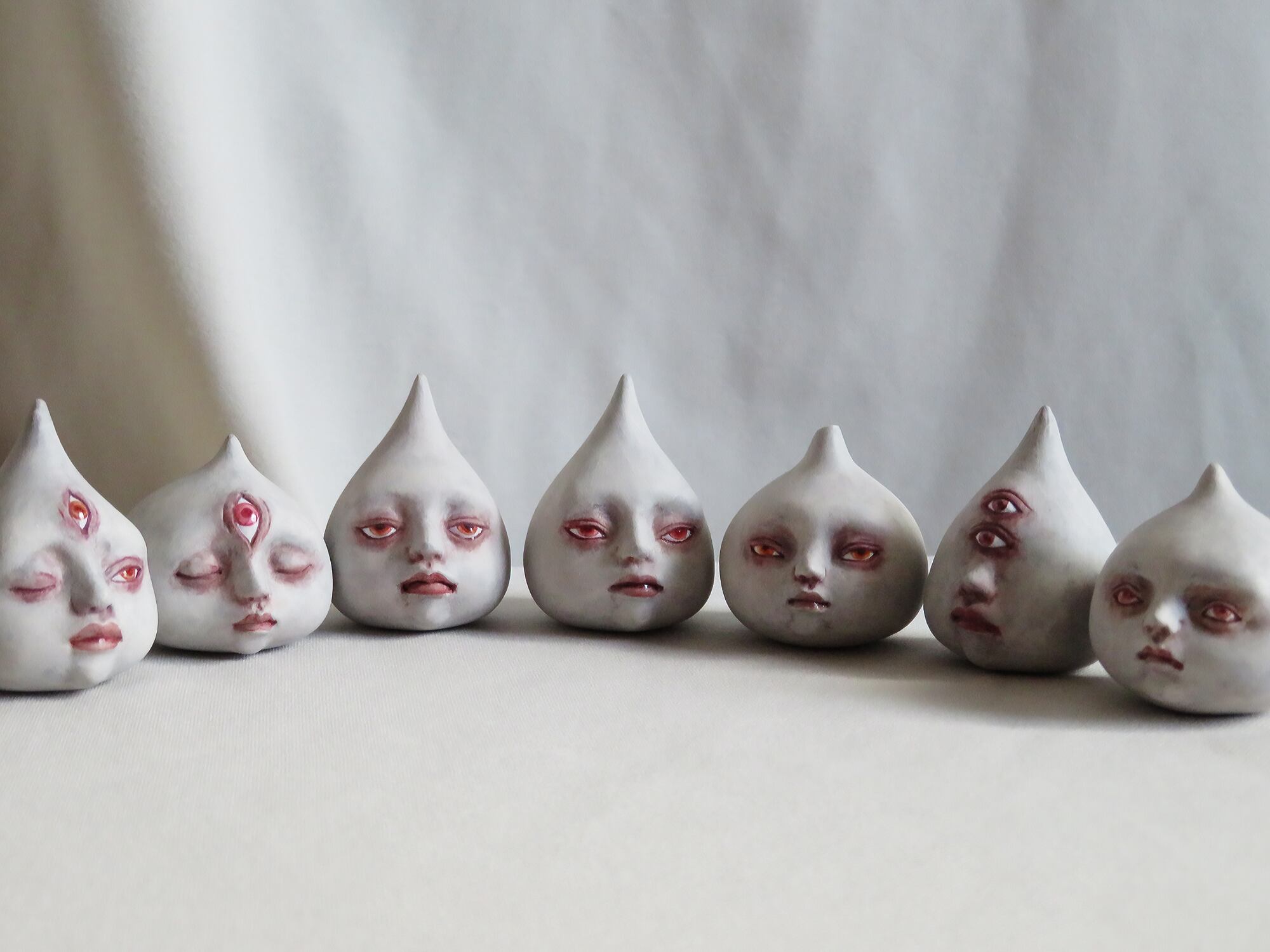 型抜き後に個々に手を加え造形していくのでさまざまな顔のひとになる。
