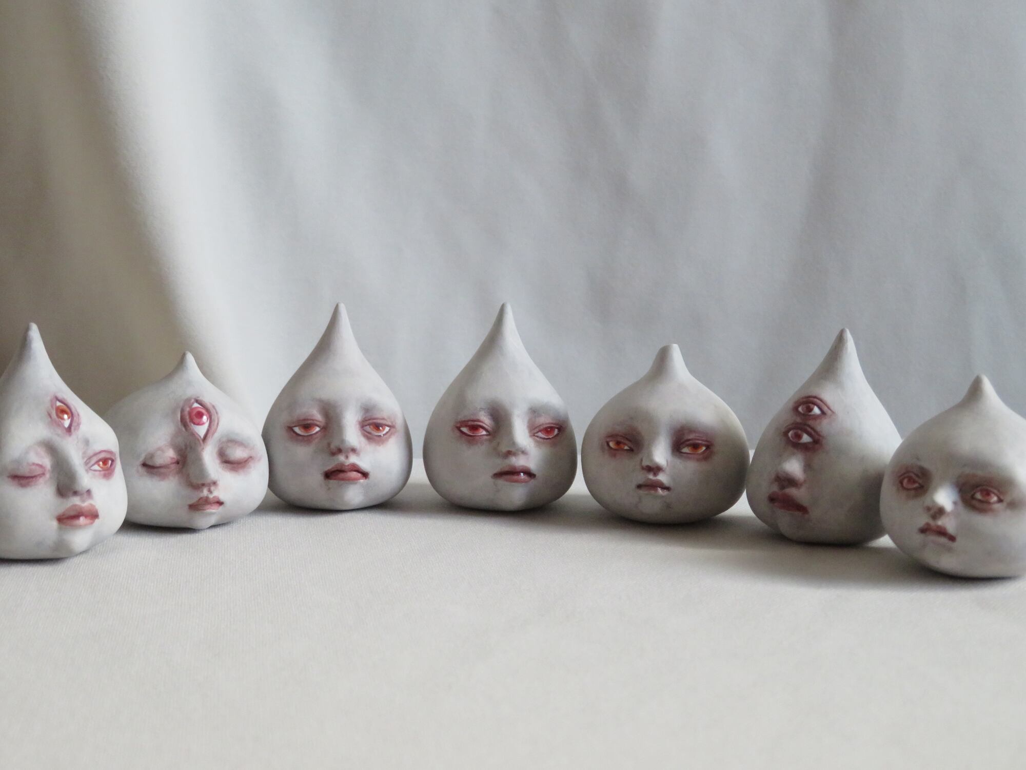 型抜き後に個々に手を加え造形していくのでいろいろな顔のひとが生まれる。
