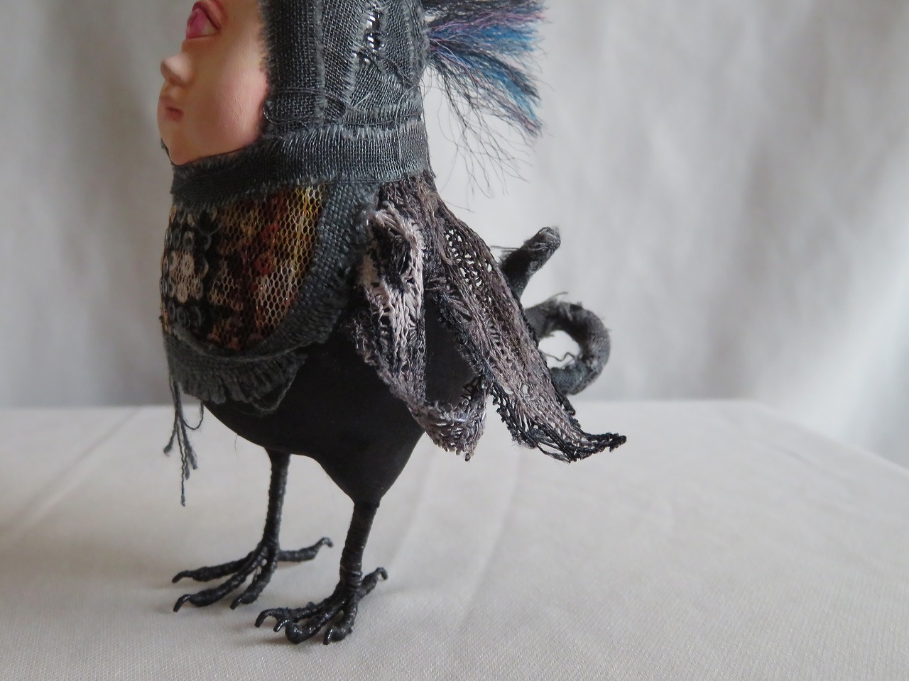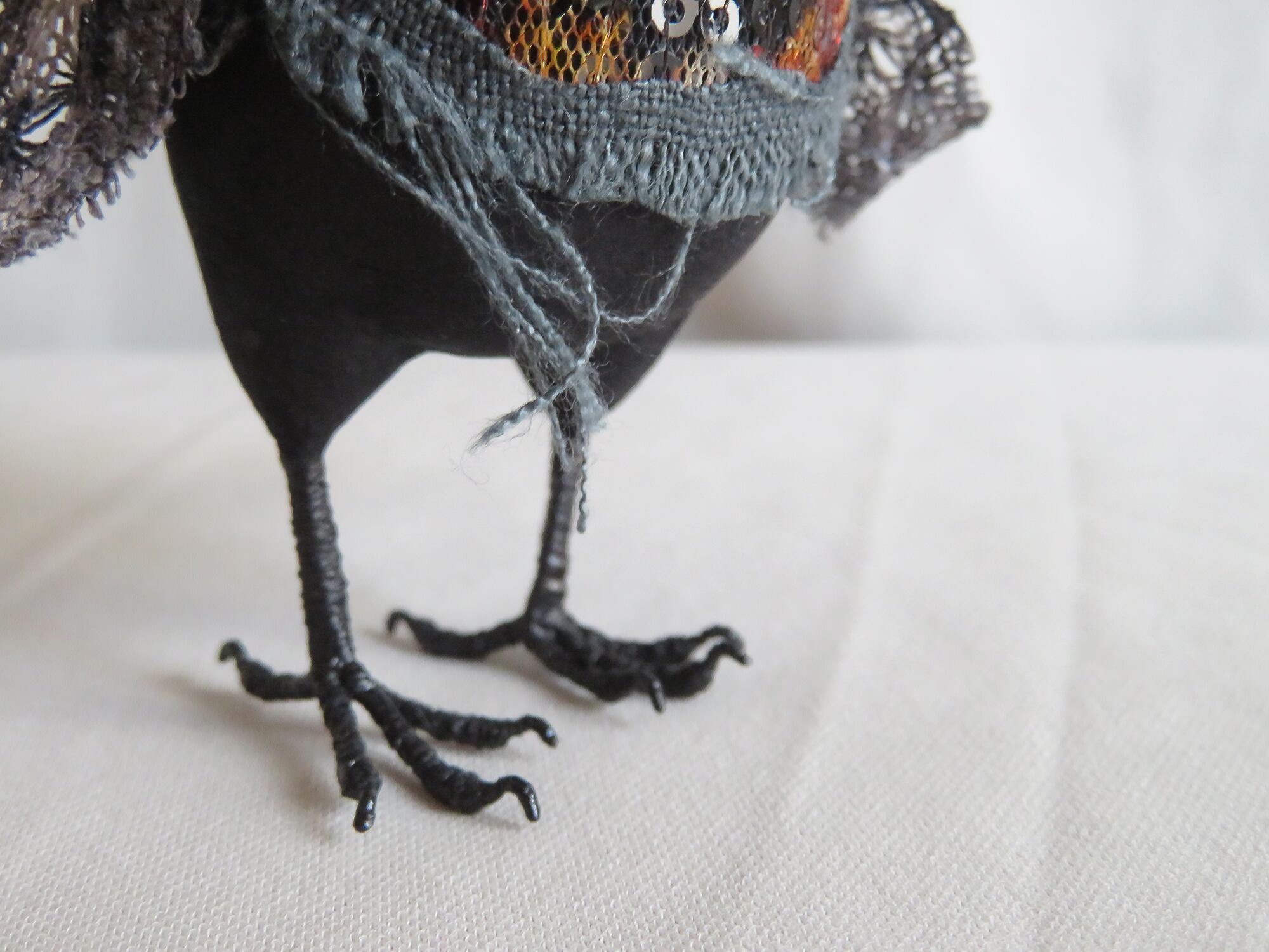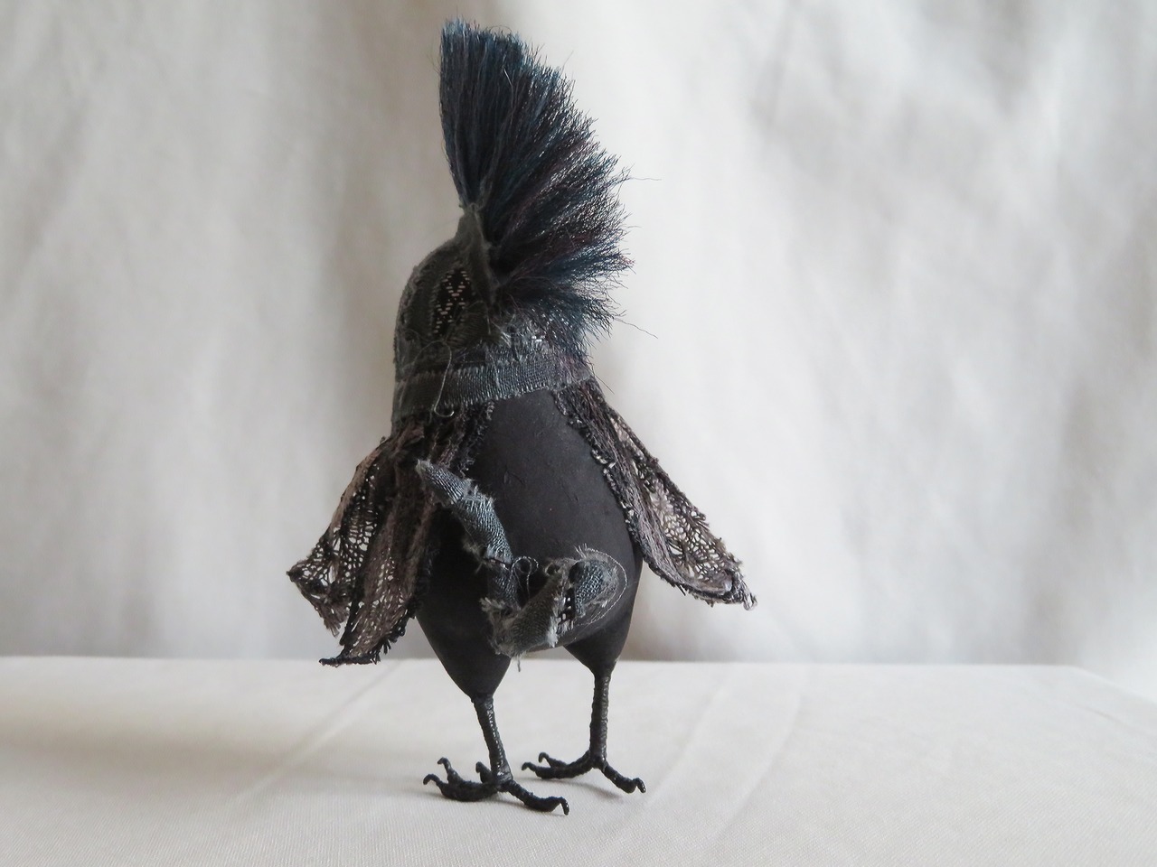 本体を粘土で成形後、黒っぽいさまざまな生地を巻きつけ貼りこみ仕上げられている。