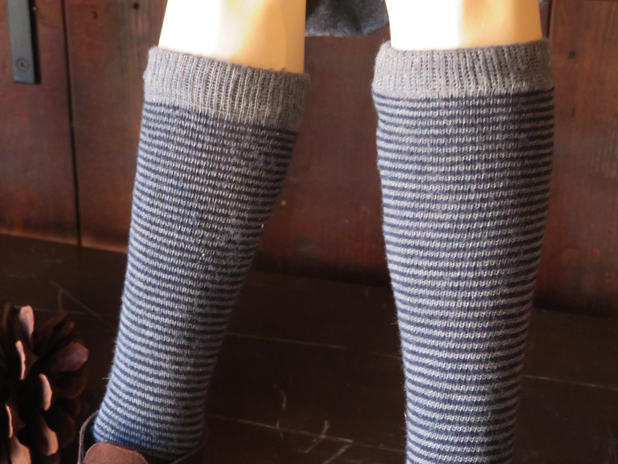 白いセーターとカジュアルな素材感の革靴、きっちりした靴下も。