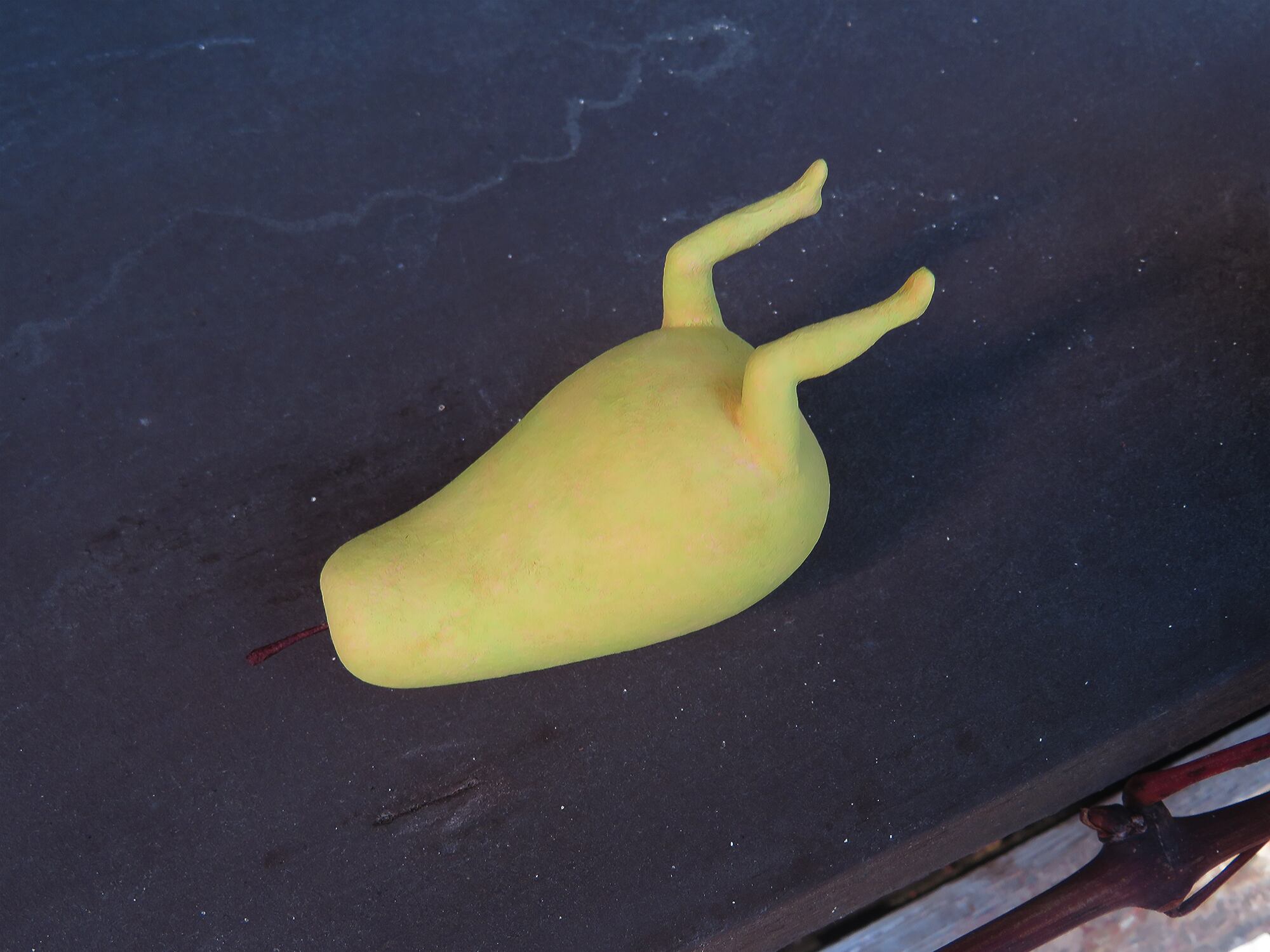 粘土で本体を造形後、和紙を貼り込みアクリルペイント仕上げ。