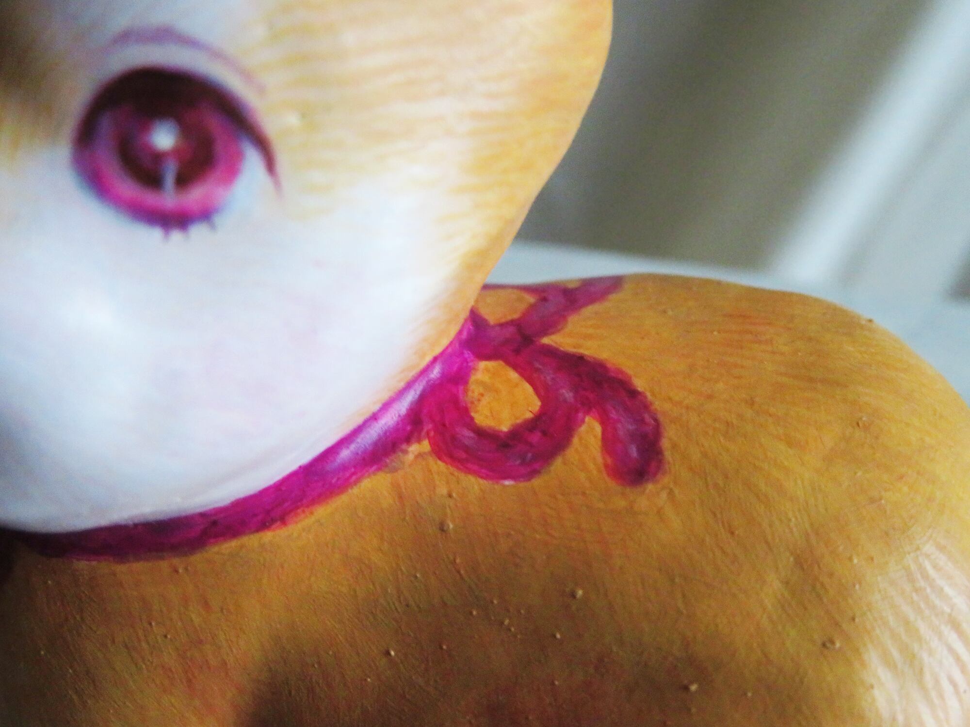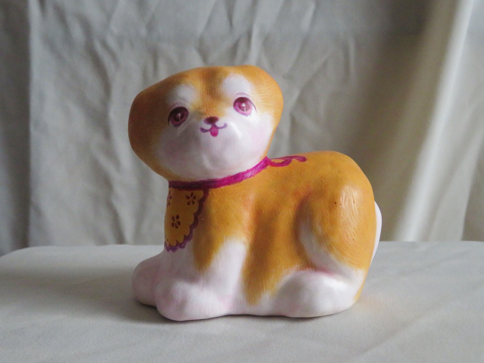 毛並みのひと筋々々まで繊細に描きこまれた密度のある張り子ちゃんです。