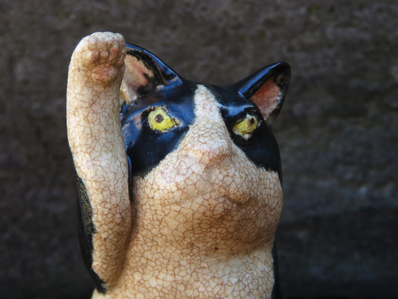 こちらのハチワレちゃんは、貫入に渋染めがしっかりと入った古色のある子。