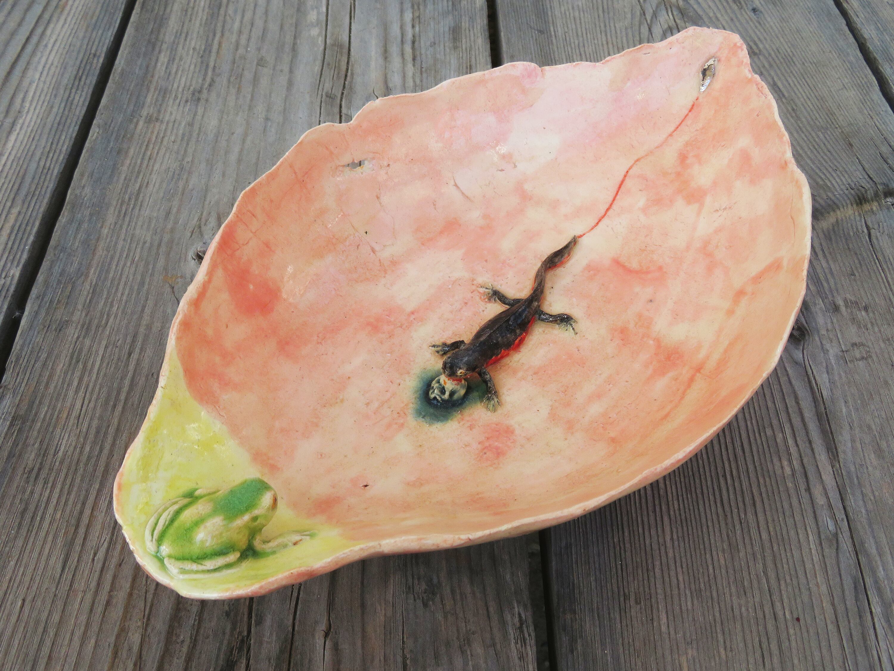 縁にはカエル、中にはイモリ。