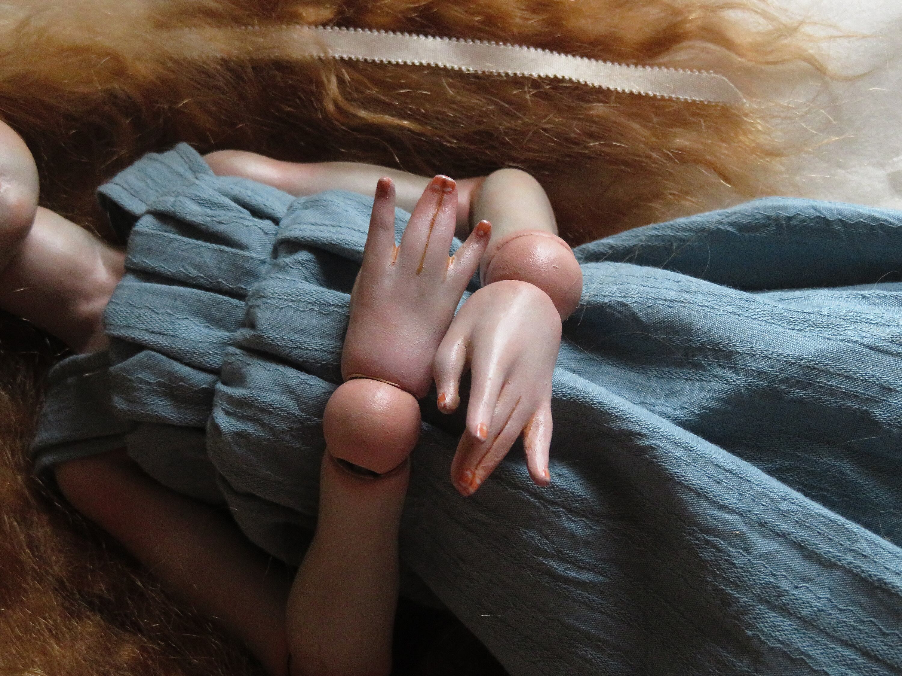 素材/ 泥漿粘土 胡粉 油彩 グラスアイ モヘア