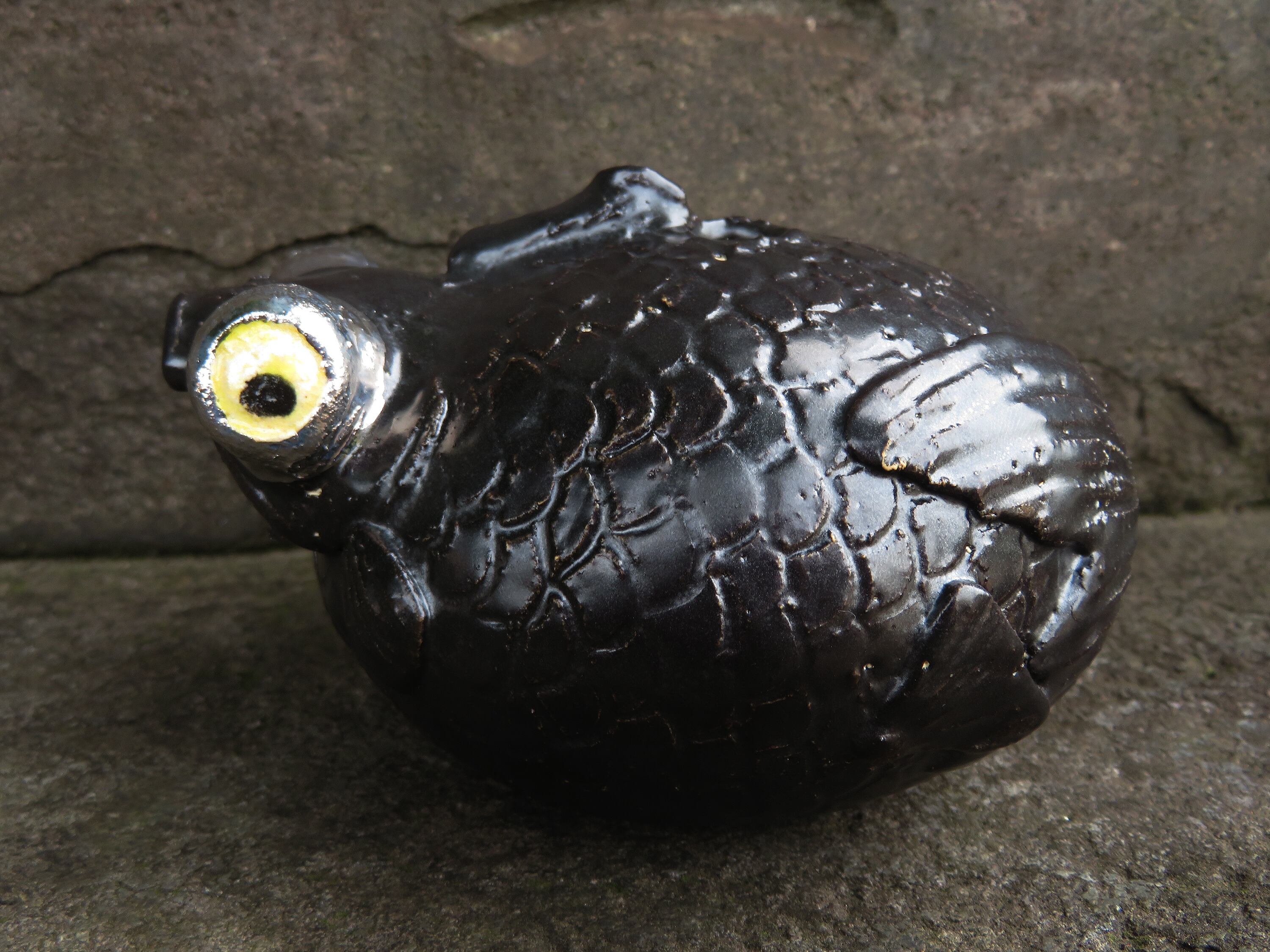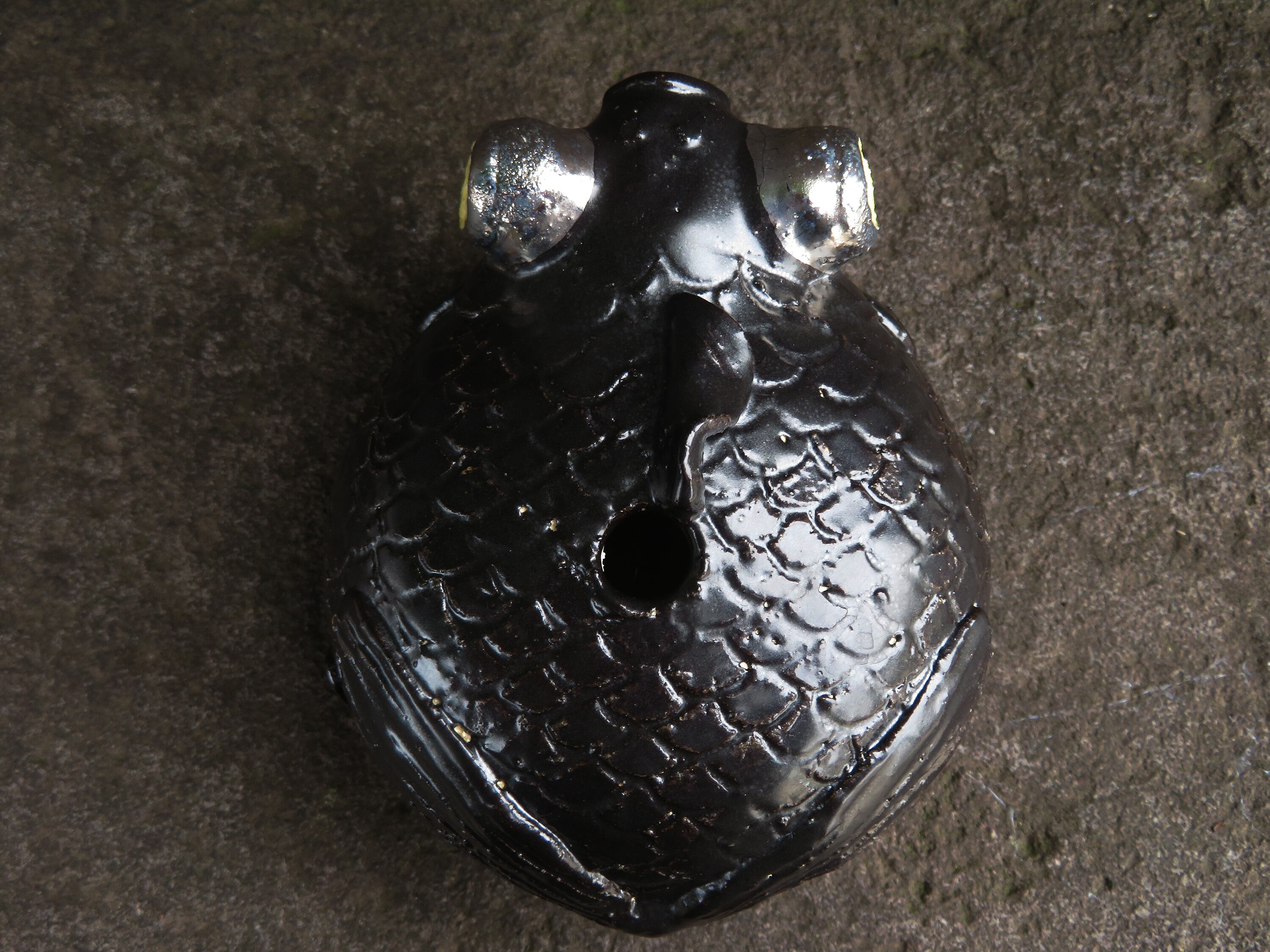 陶芸作家の相場るい児さんによる出目金の一輪挿し。
