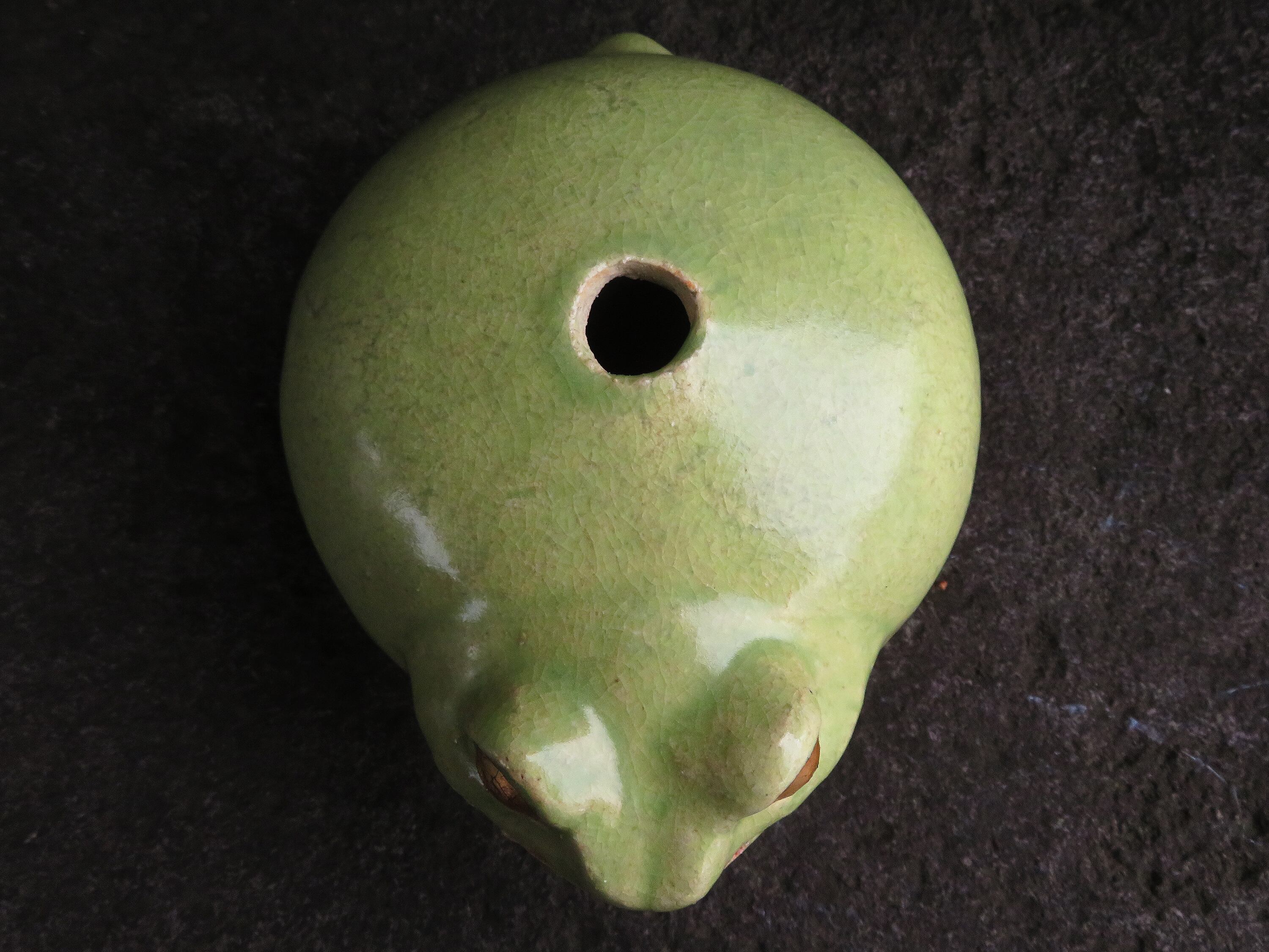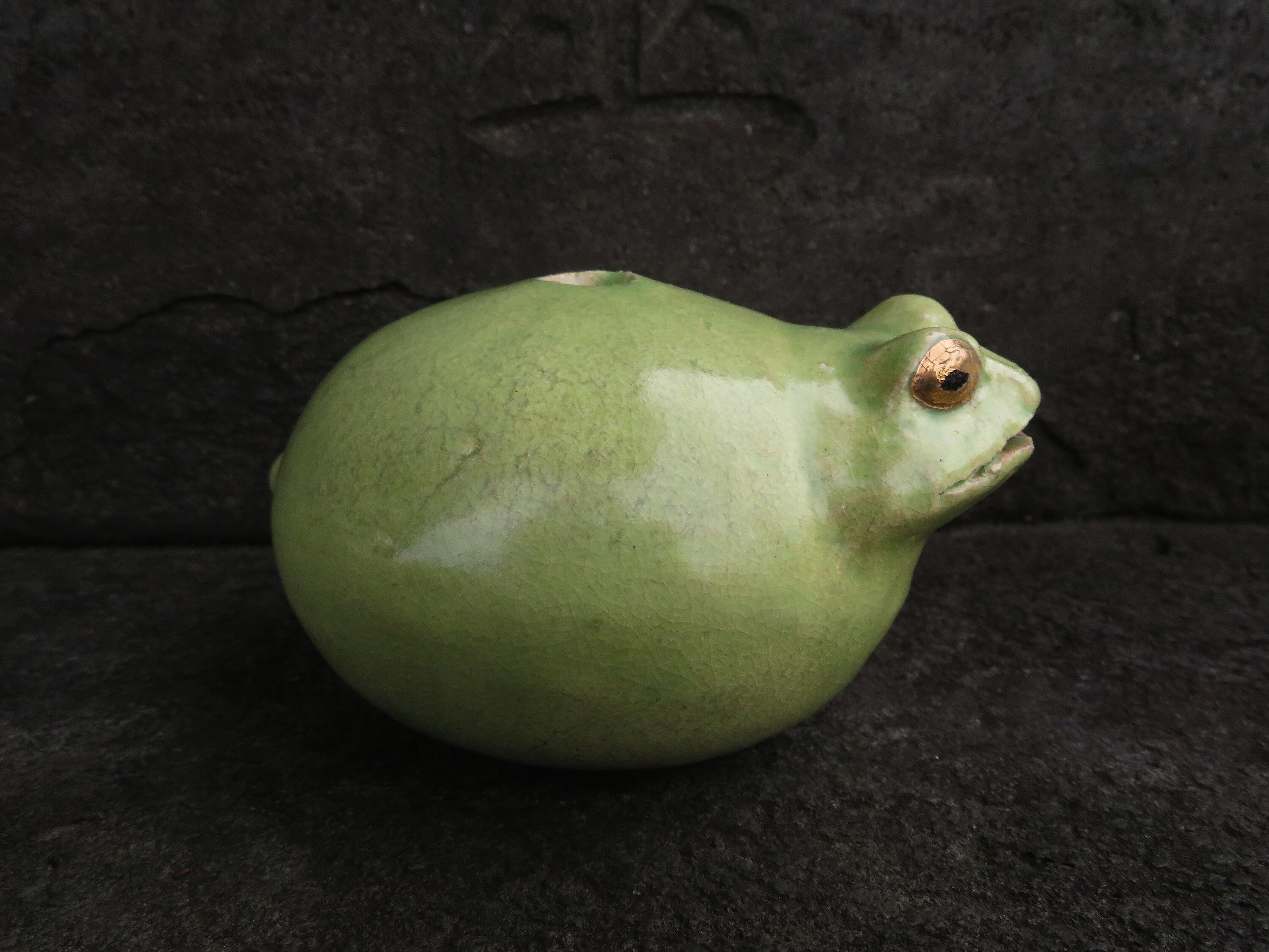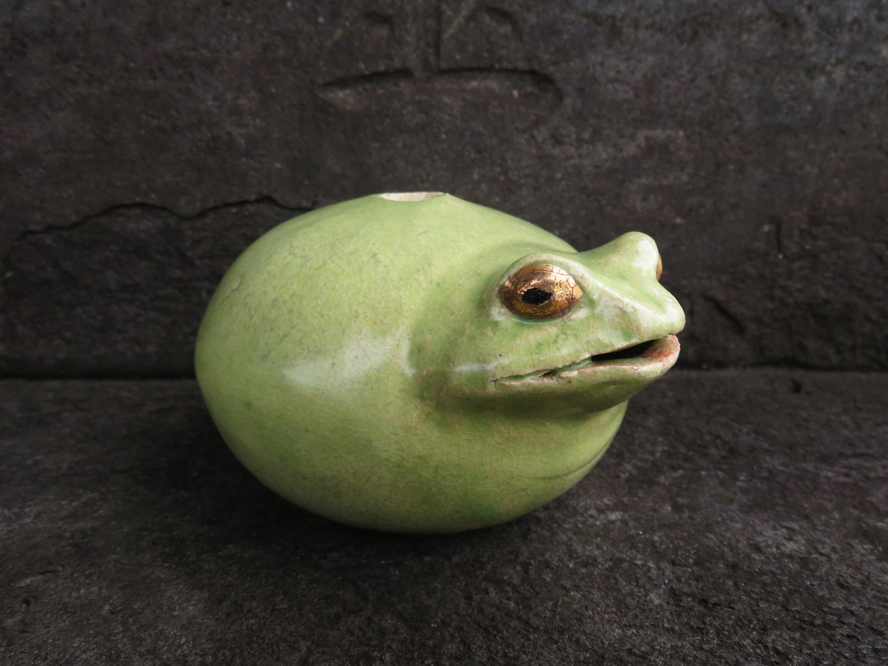 陶芸作家の相場るい児さんによる蛙の一輪挿し。
