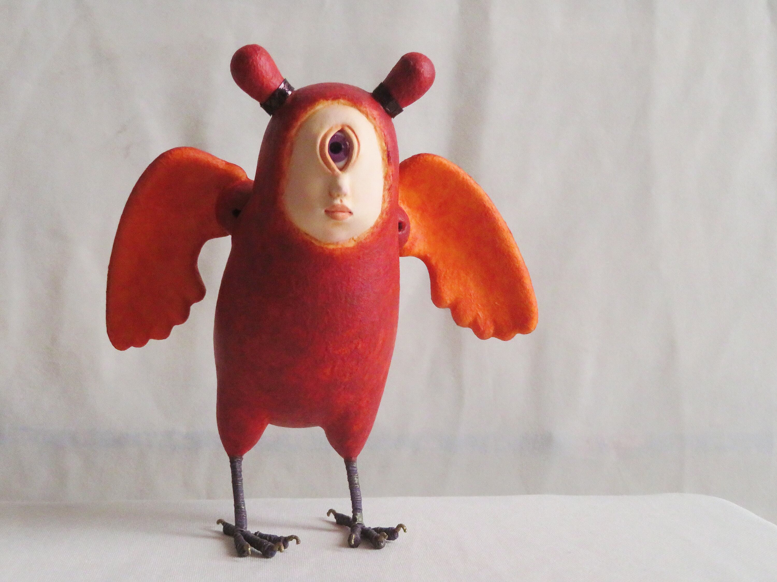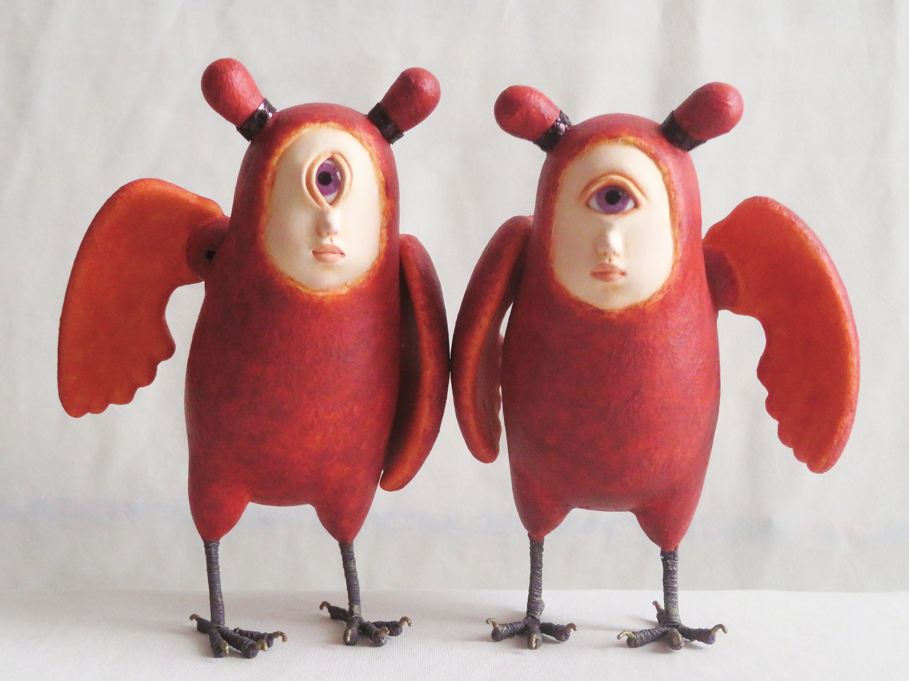 モノアイ(単眼)の双子の人面鳥は2018年にも制作している。