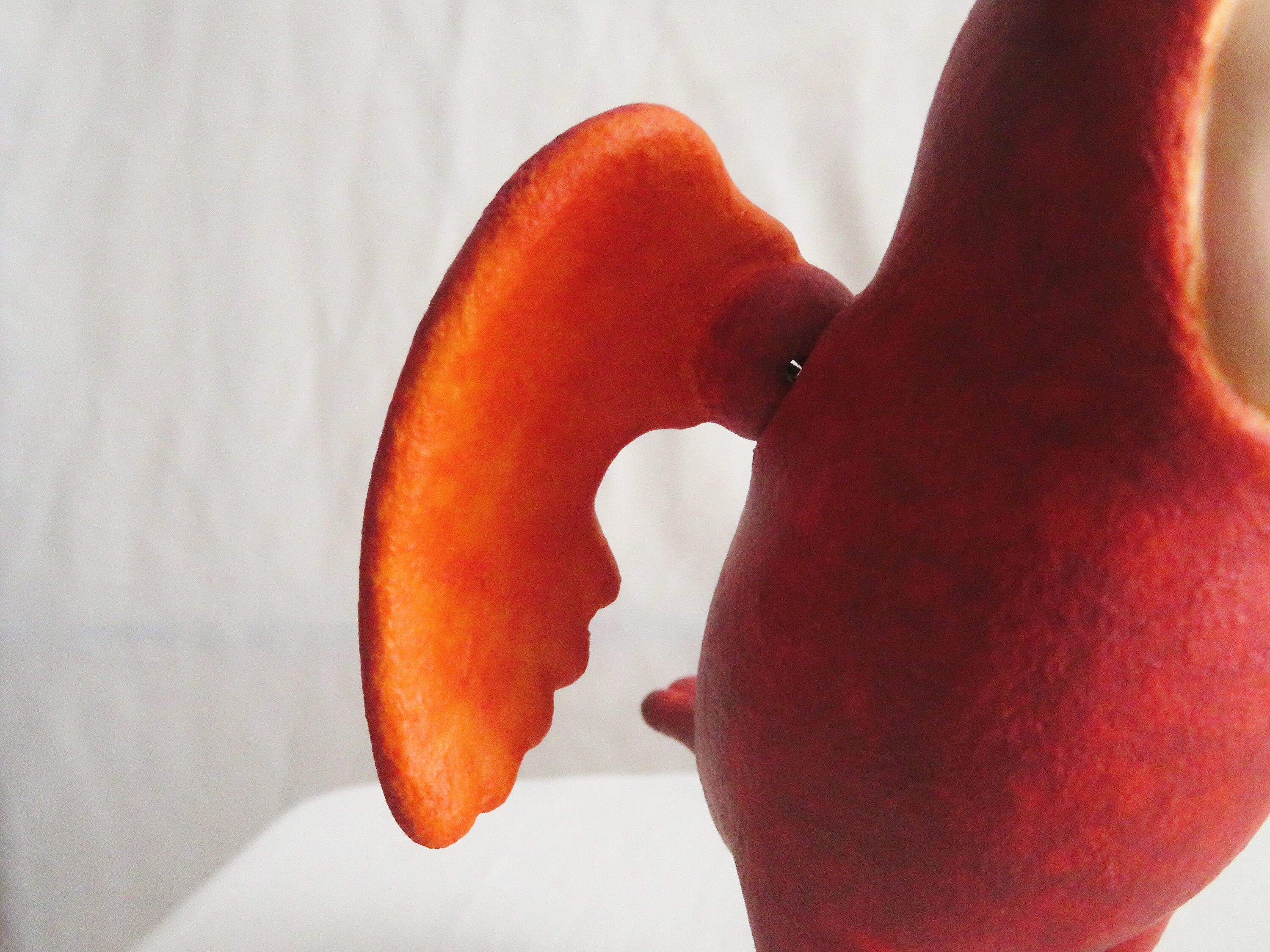 本体は鉄錆色、羽根の内側は鮮烈なオレンジカラー。