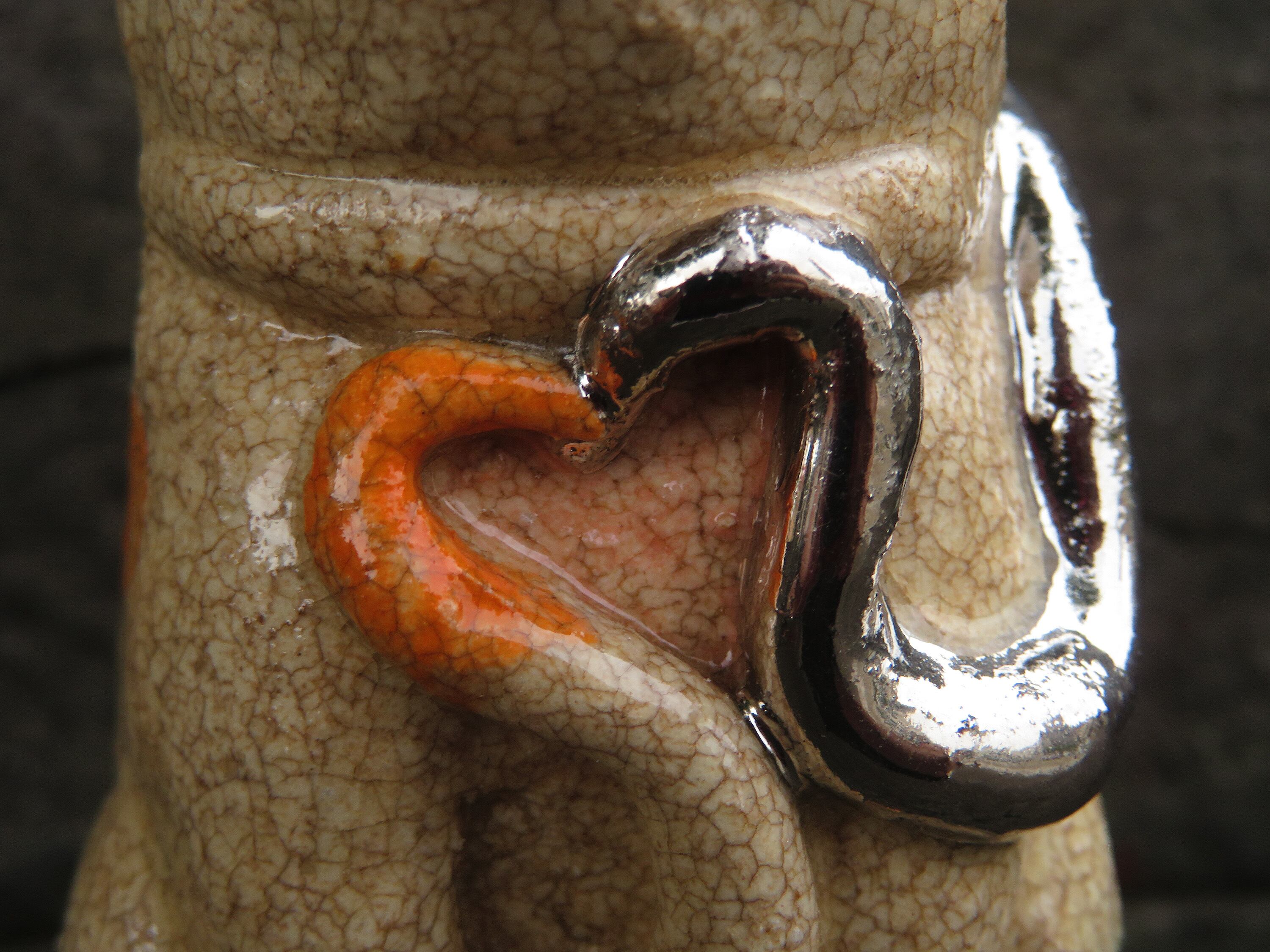 三毛猫の尻尾と蛇の尻尾がハートを作っています。