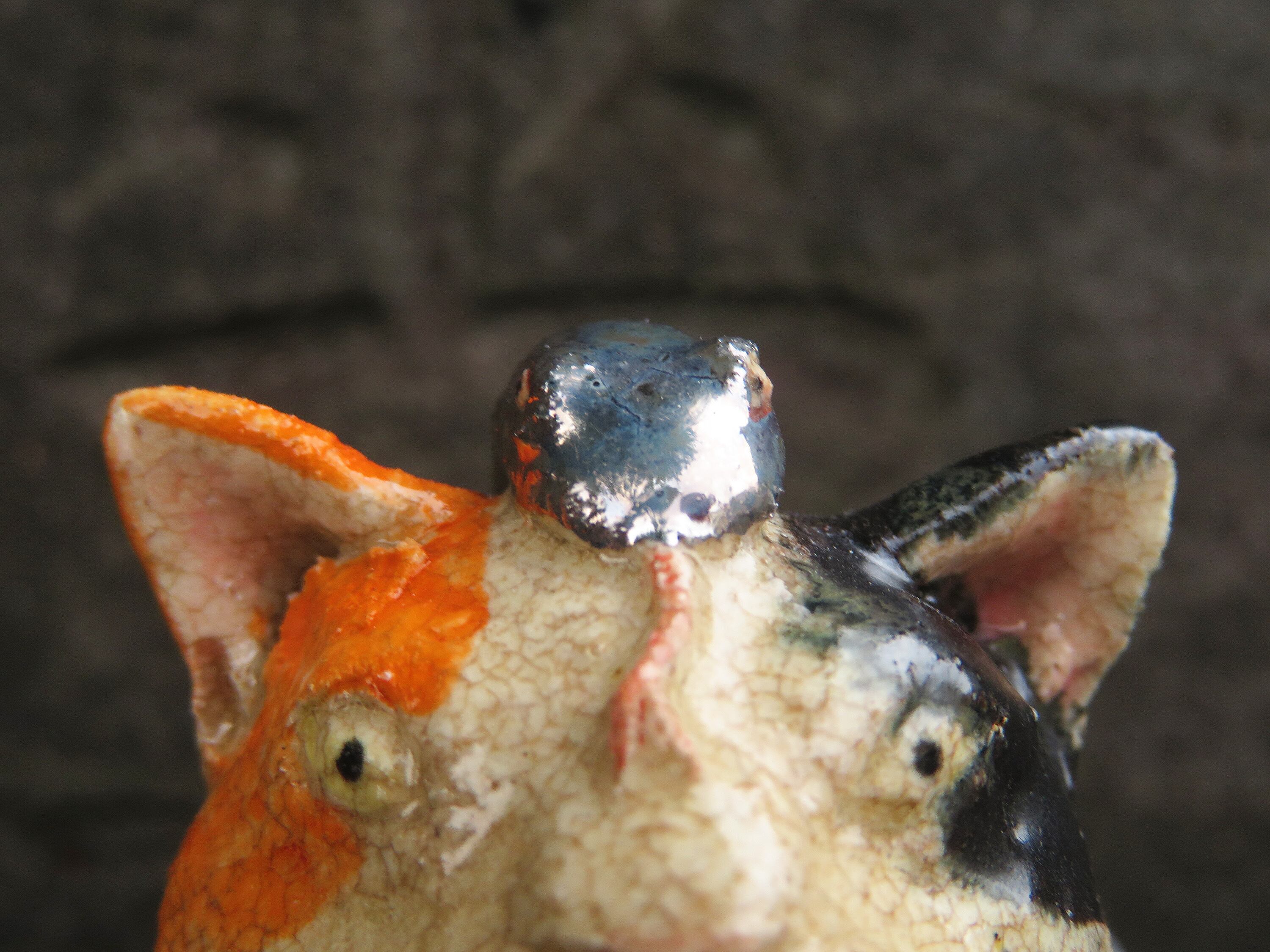 三毛猫の尻尾と蛇の尻尾がハートを作っています。